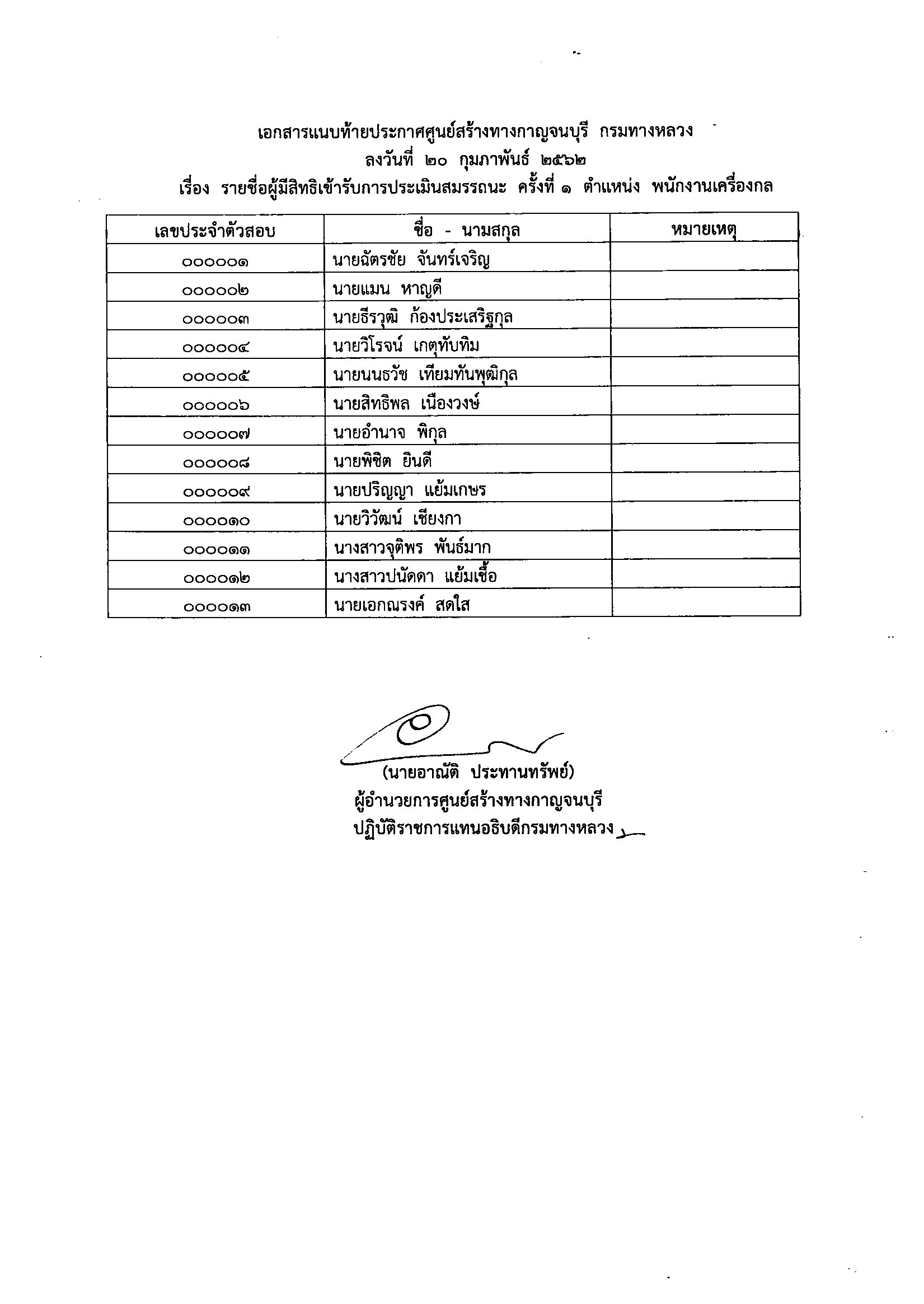 รายชื่อผู้มีสิทธิเข้ารับการประเมินสมรรถนะ ครั้งที่ 1 กำหนดวัน เวลา สถานที่ในการประเมินสมรรถนะ ตำแหน่ง พนักงานโยธา และตำแหน่ง พนักงานเครื่องกล