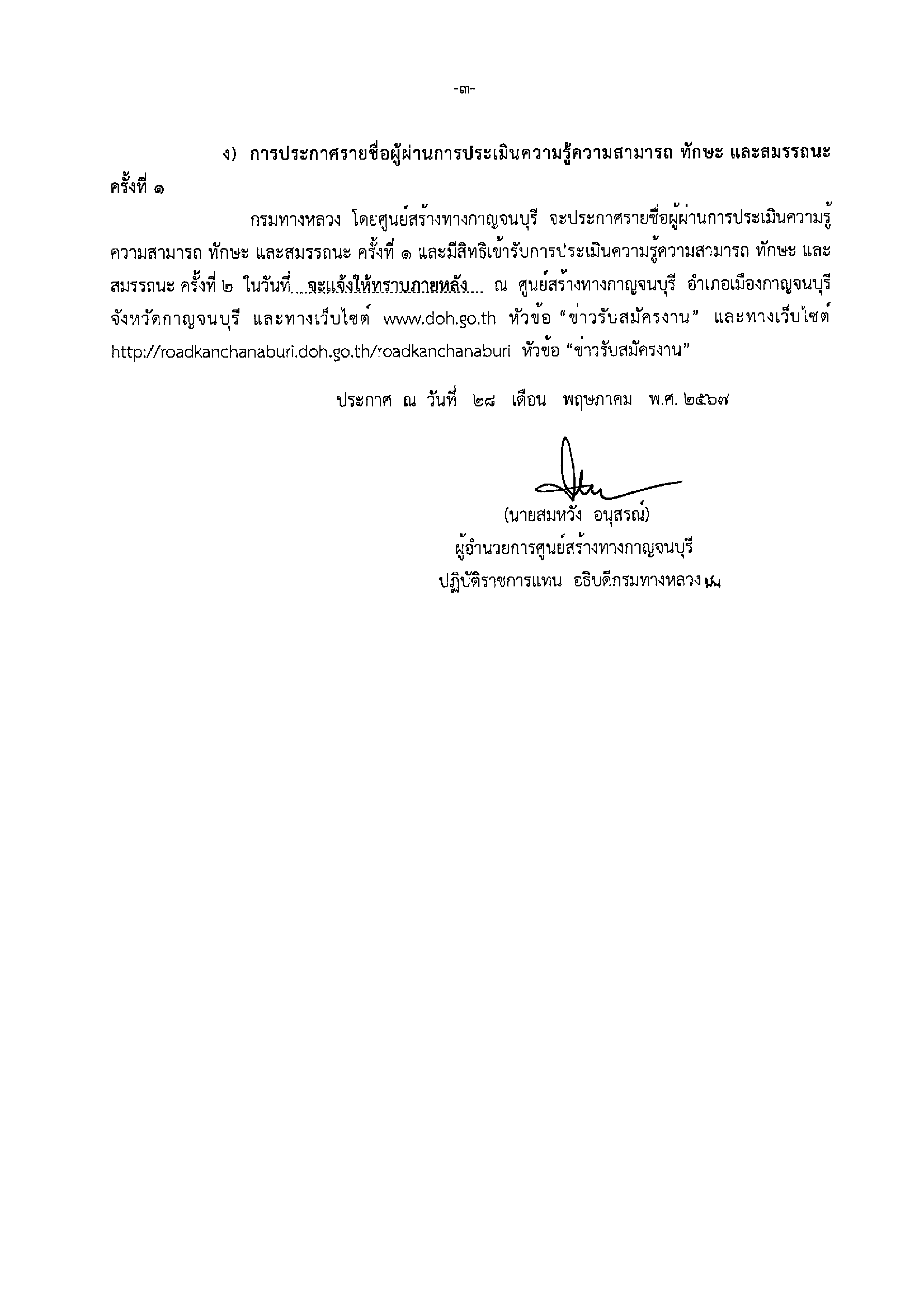 ผู้อำนวยการศูนย์สร้างทางกาญจนบุรี