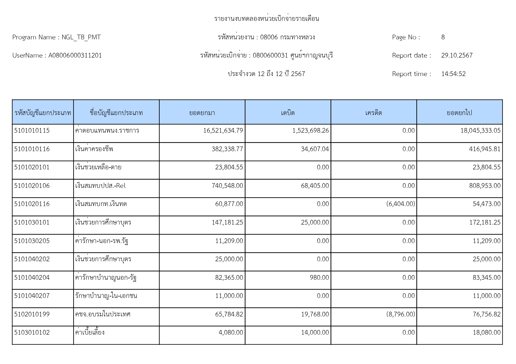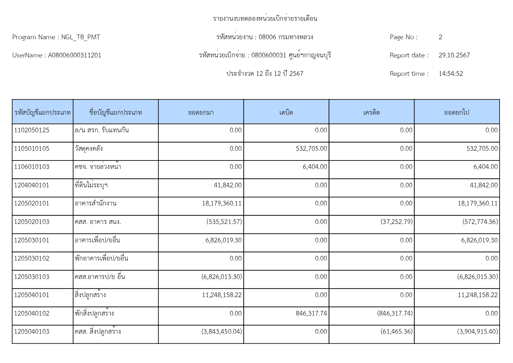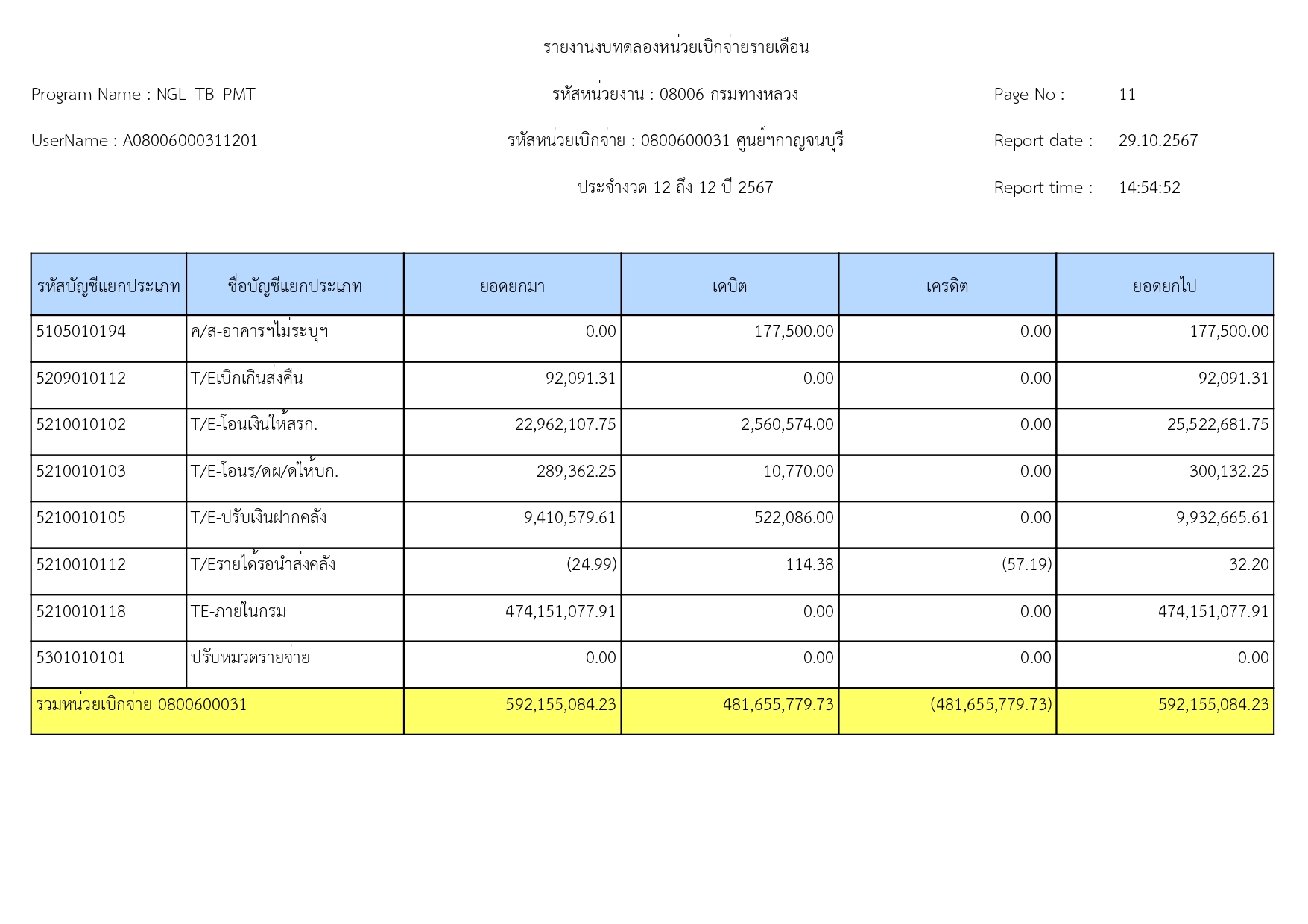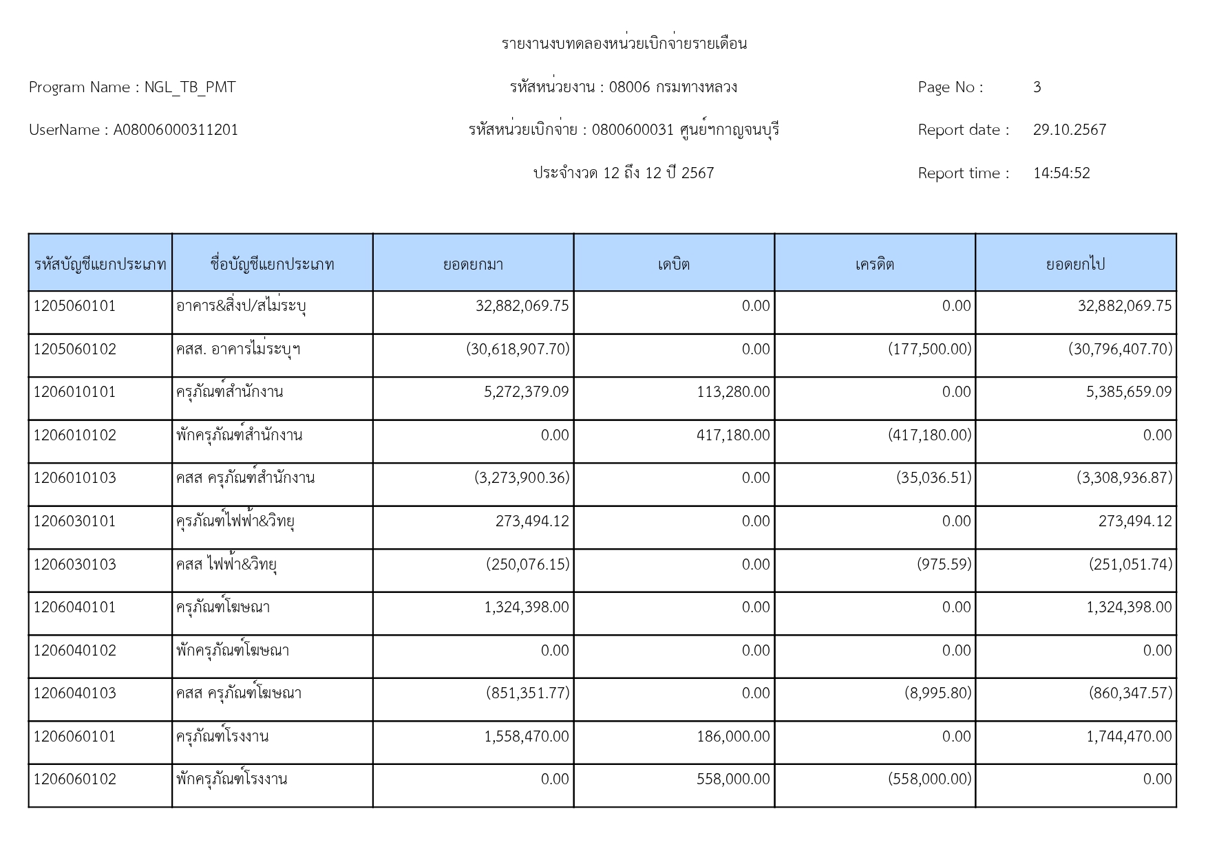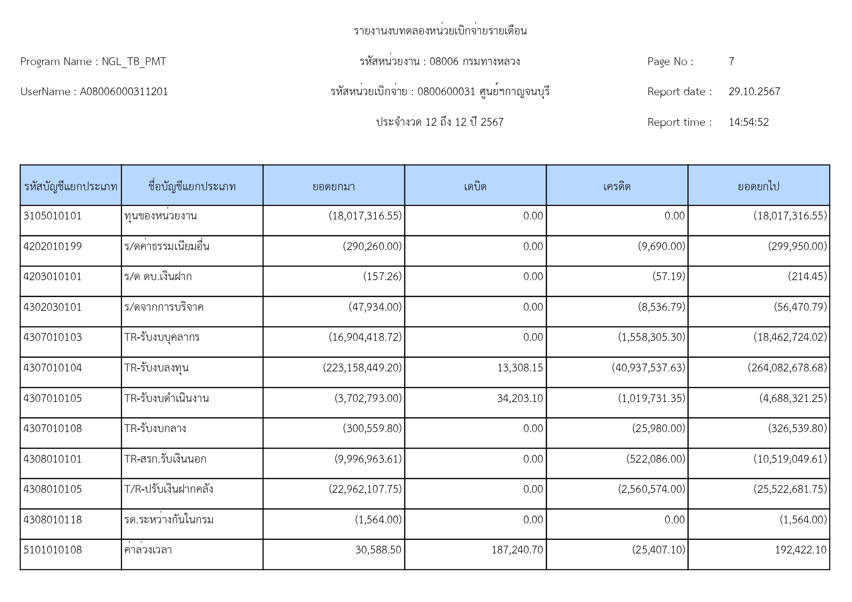ข้อมูลข่าว : รายงานงบทดลอง เดือน กันยายน 2567