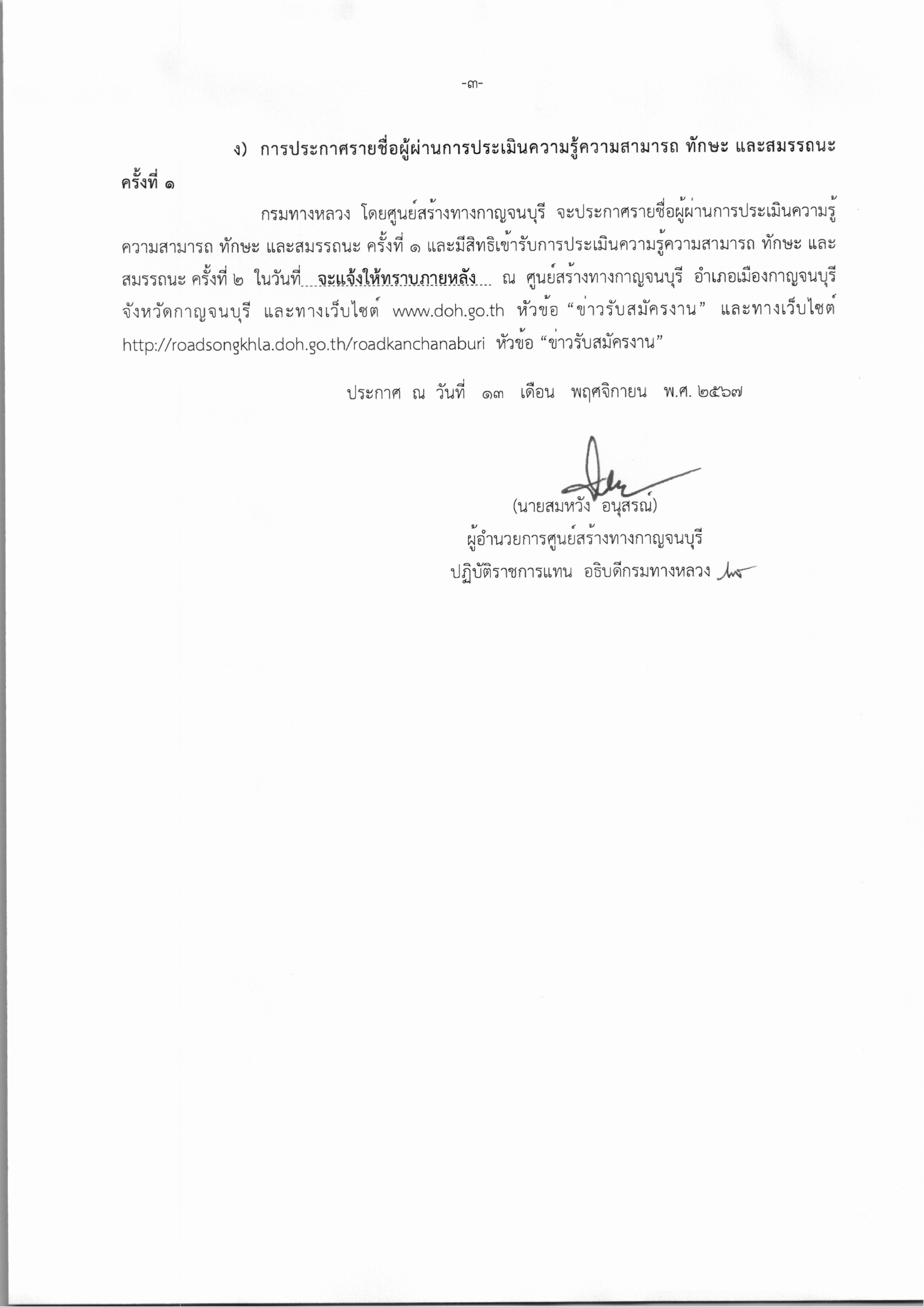 ผู้อำนวยการศูนย์สร้างทางกาญจนบุรี