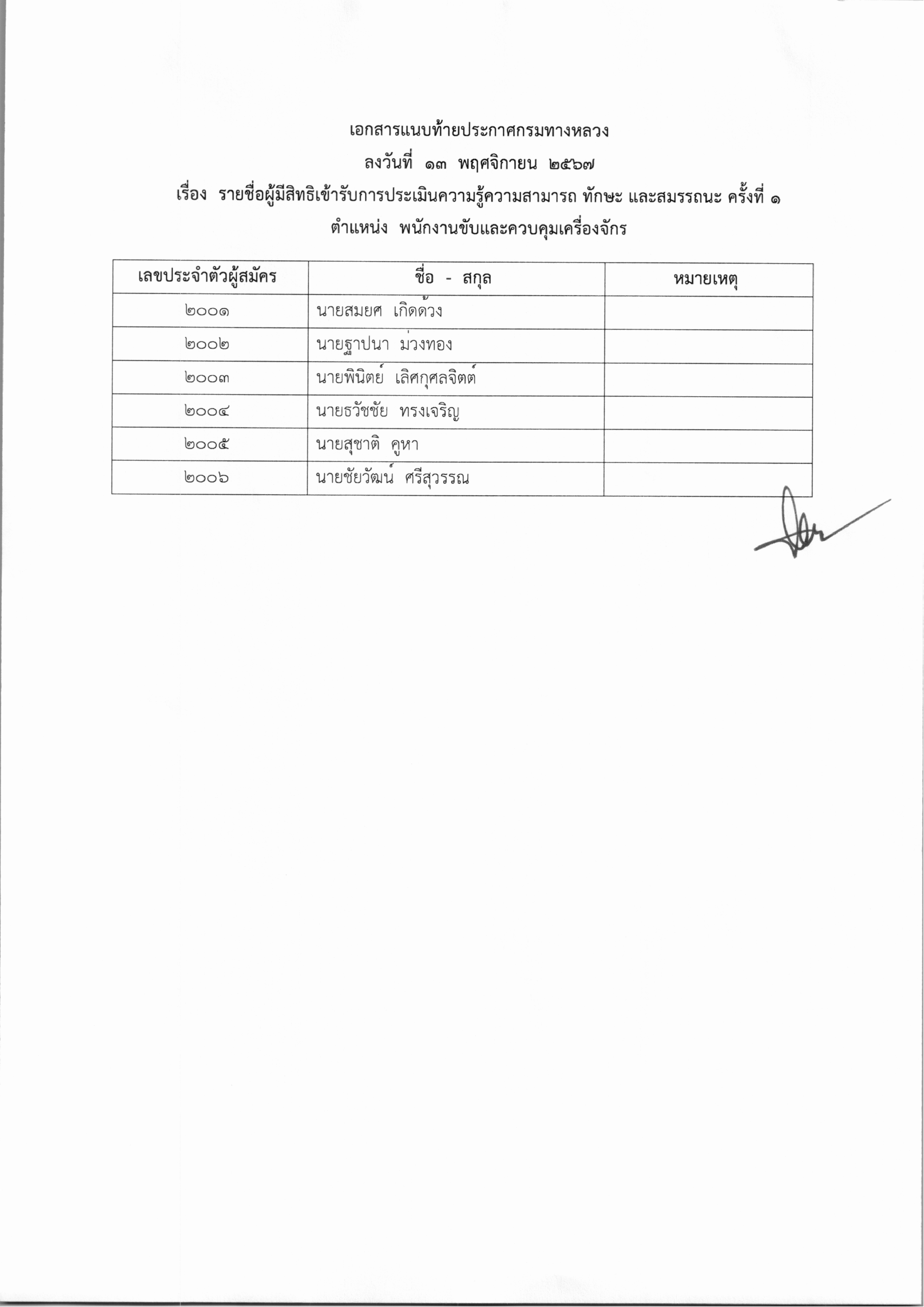 ประกาศรายชื่อผู้มีสิทธิเข้ารับการประเมินความรู้ความสามารถ ทักษะและสมรรถนะ ครั้งที่1