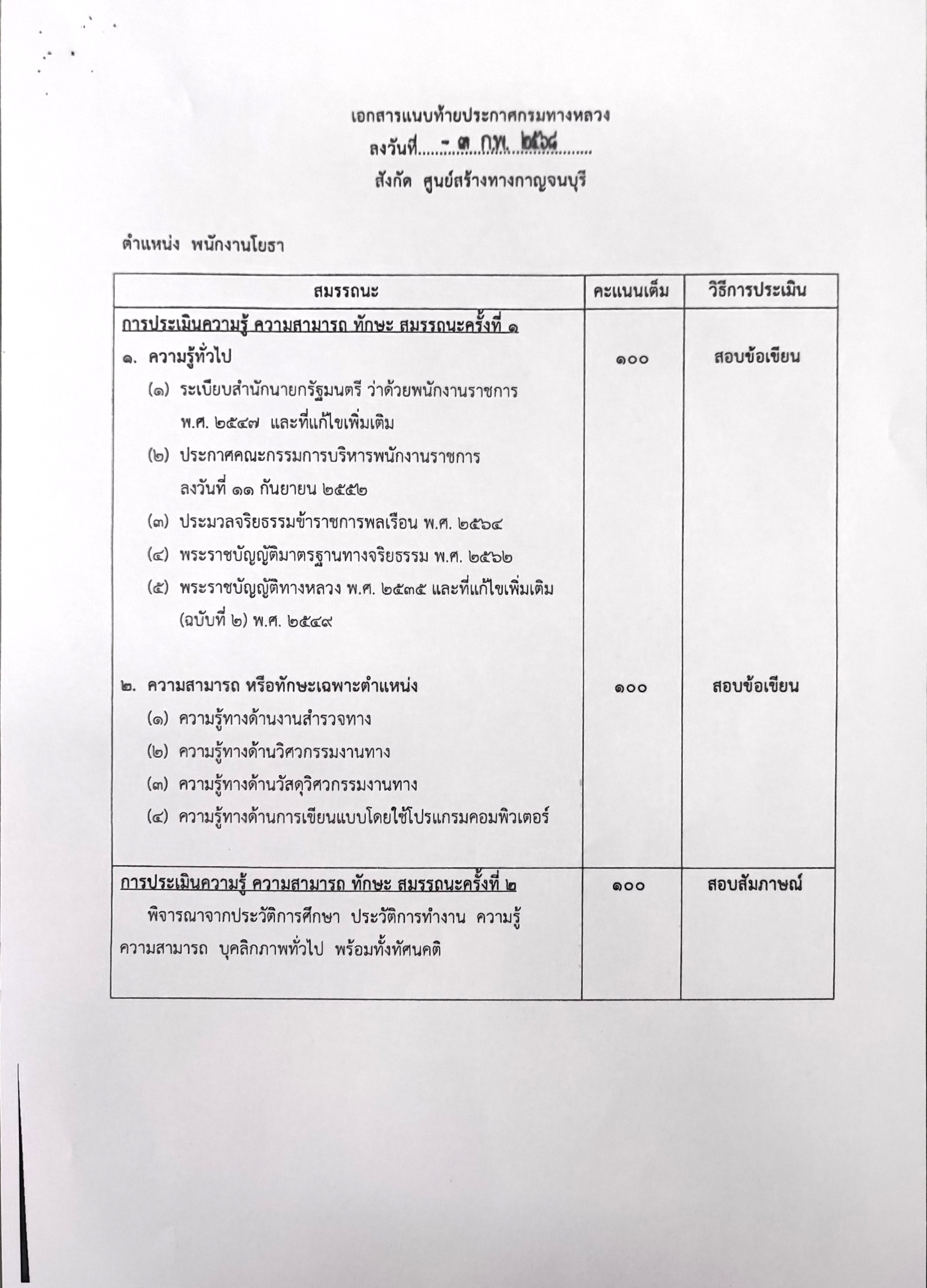 ศูนย์สร้างทางกาญจนบุรีเปิดรับสมัครบุคคลเพื่อสรรหา และเลือกสรรเป็นพนักงานราชการทั่วไป ตำแหน่ง พนักงานโยธา จำนวน 1 อัตรา