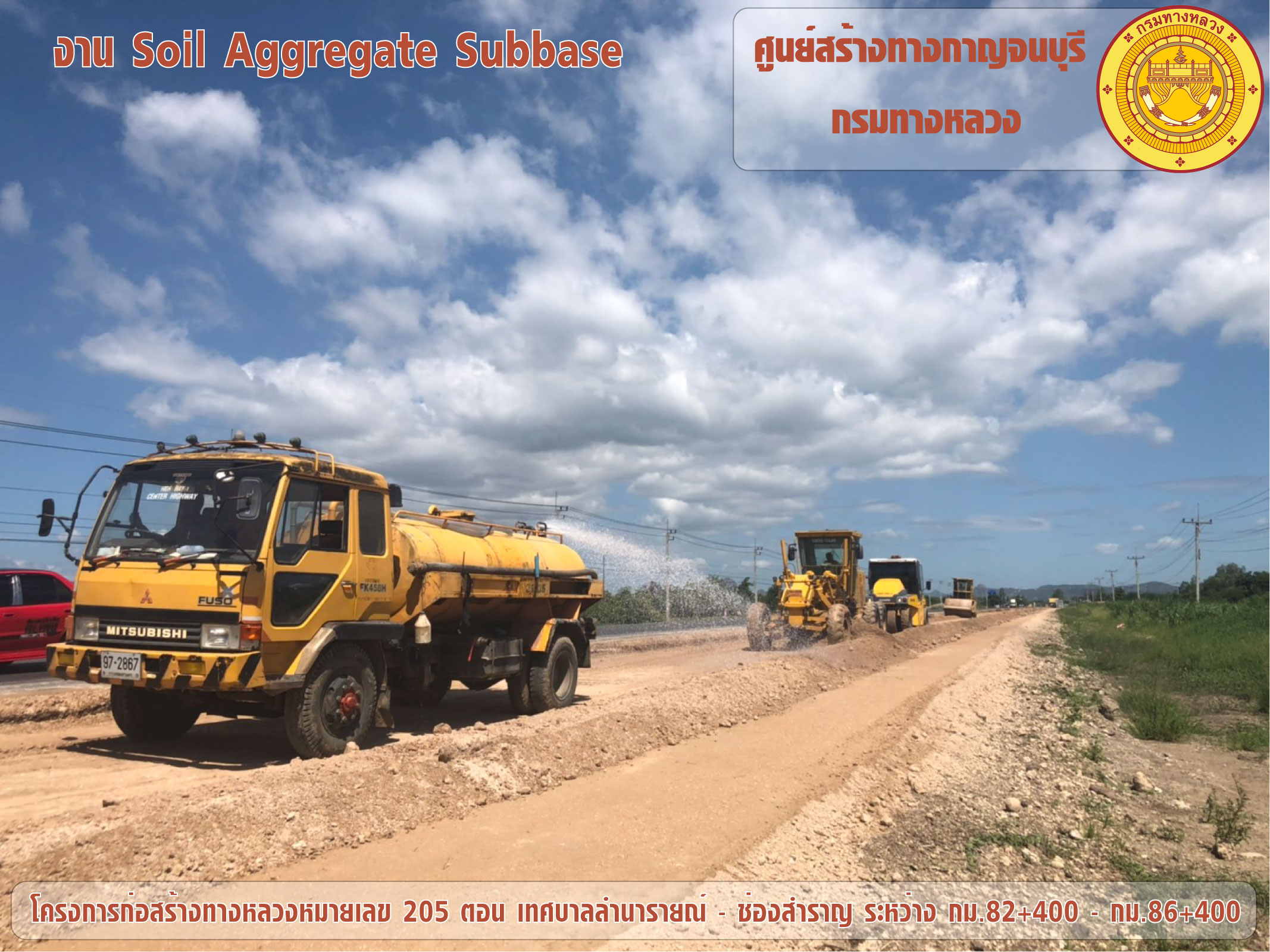 โครงการก่อสร้างทางหลวงหมายเลข 205 ตอน เทศบาลลำนารายณ์ - ช่องสำราญ ระหว่าง กม.82+400 - กม.86+400 ดำเนินการก่อสร้างงาน Soil Aggregate Subbase