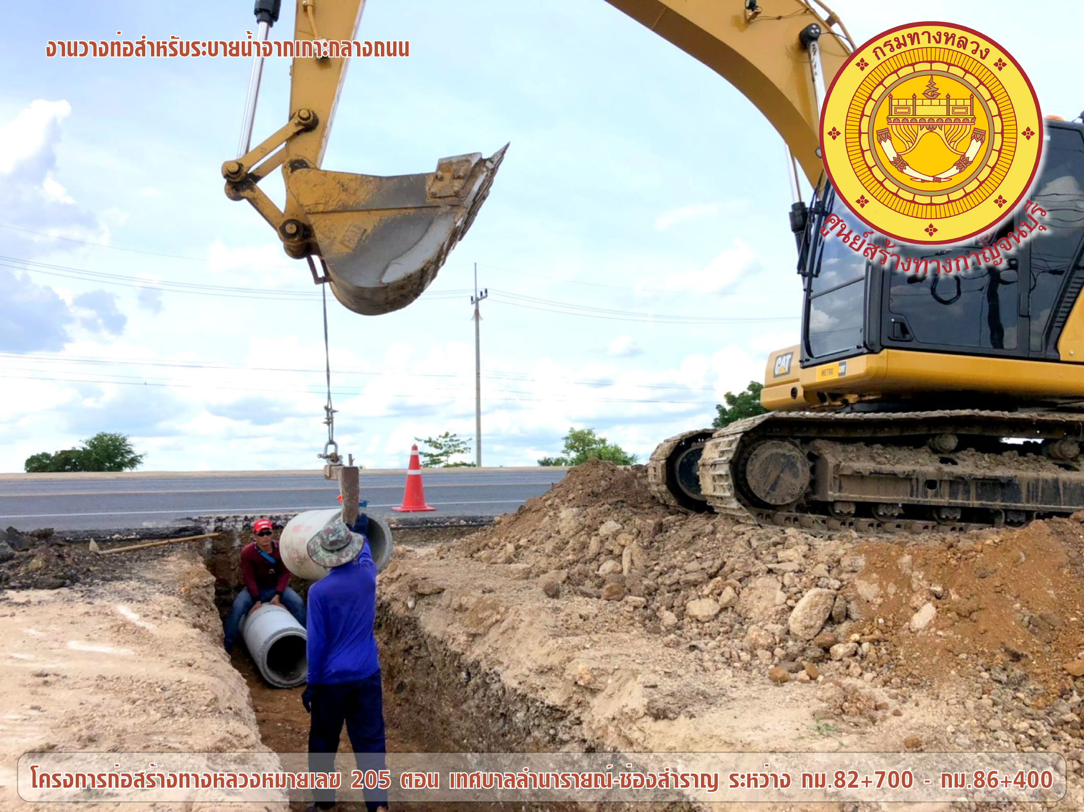 โครงการก่อสร้างทางหลวงหมายเลข 205 ตอน เทศบาลลำนารายณ์ - ช่องสำราญ ระหว่าง กม.82+700 - กม.86+400 ดำเนินการวางท่อขนาด 0.40 ม.