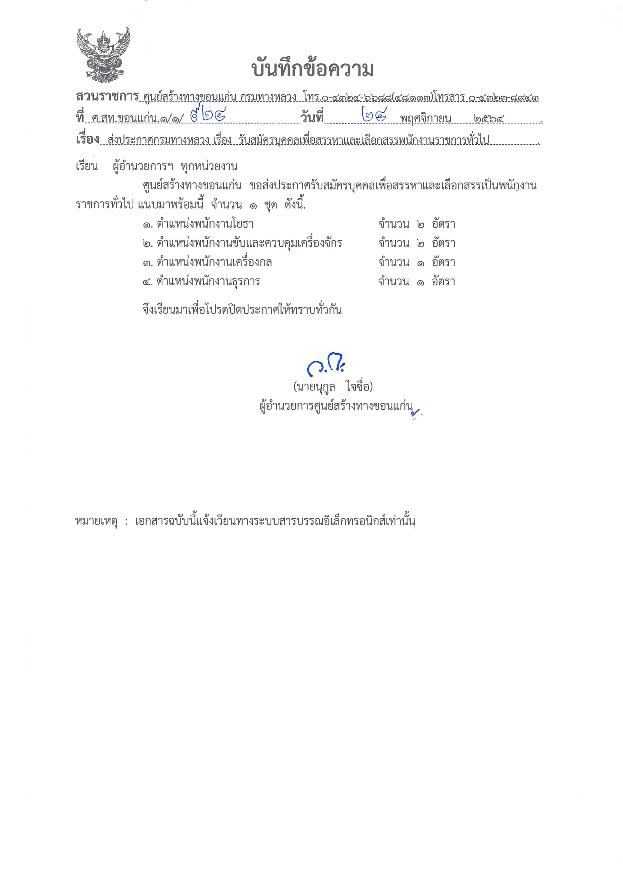 ๑.ตำแหน่งพนักงานโยธา จำนวน ๒ อัตรา