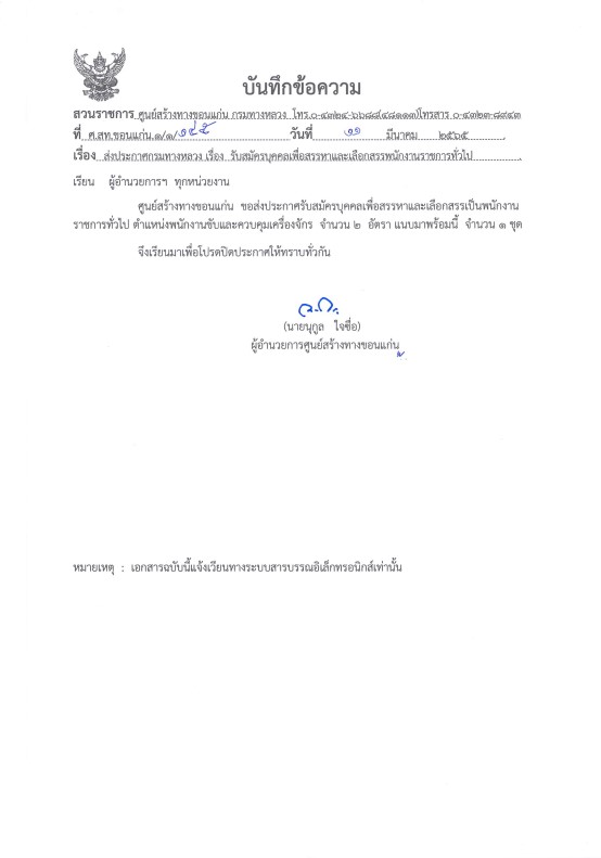 ประกาศรับสมัครบุคคลเพื่อสรรหาเเละเลือกสรรหาพนักงานราชการทั่วไป