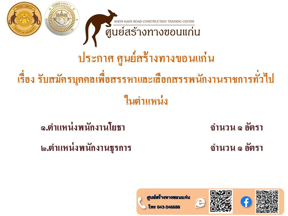 ประกาศศูนย์สร้างทางขอนแก่น เรื่อง รับสมัครบุคคลเพื่อสรรหาและเลือกสรรพนักงานราชการทั่วไป ในตำแหน่ง