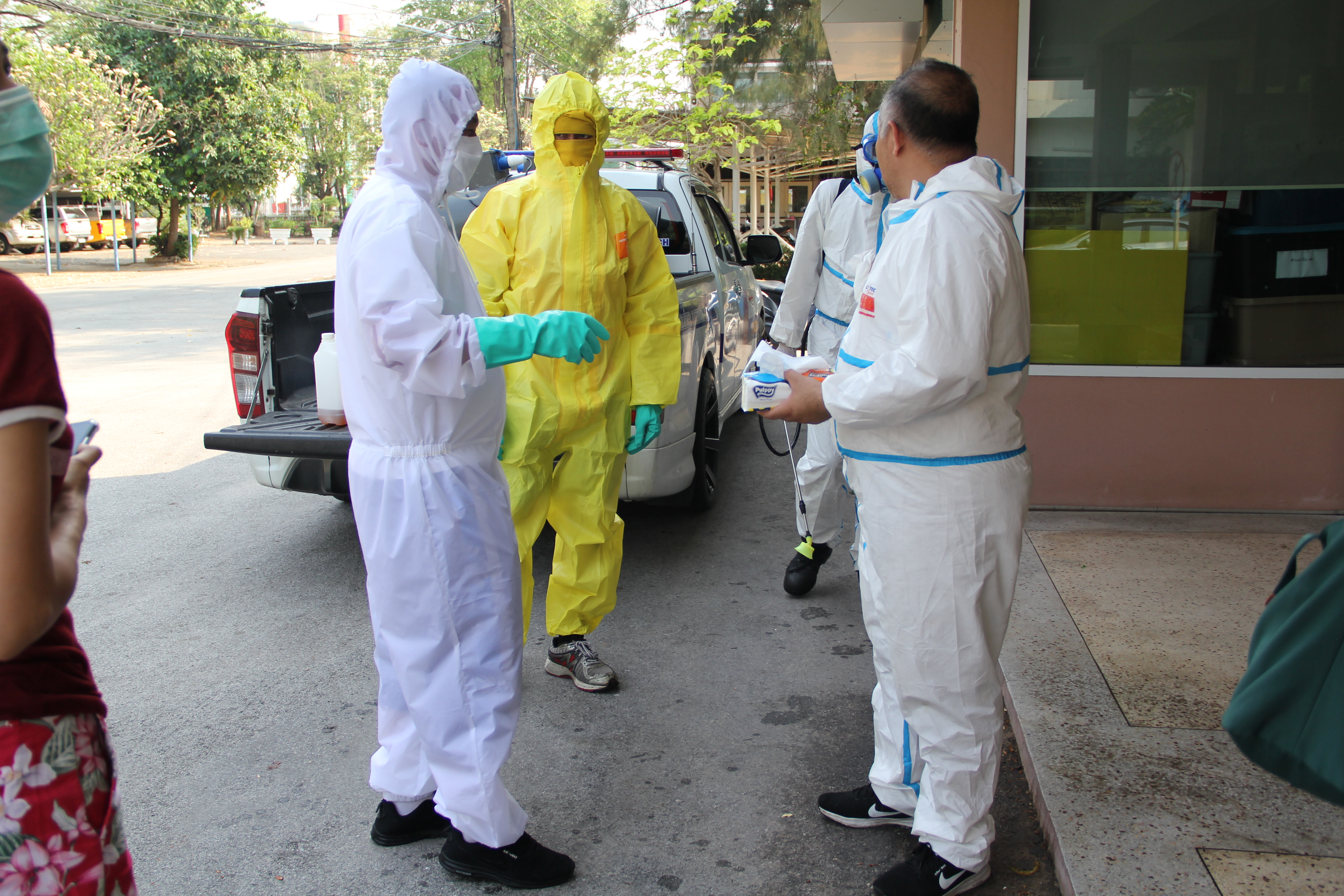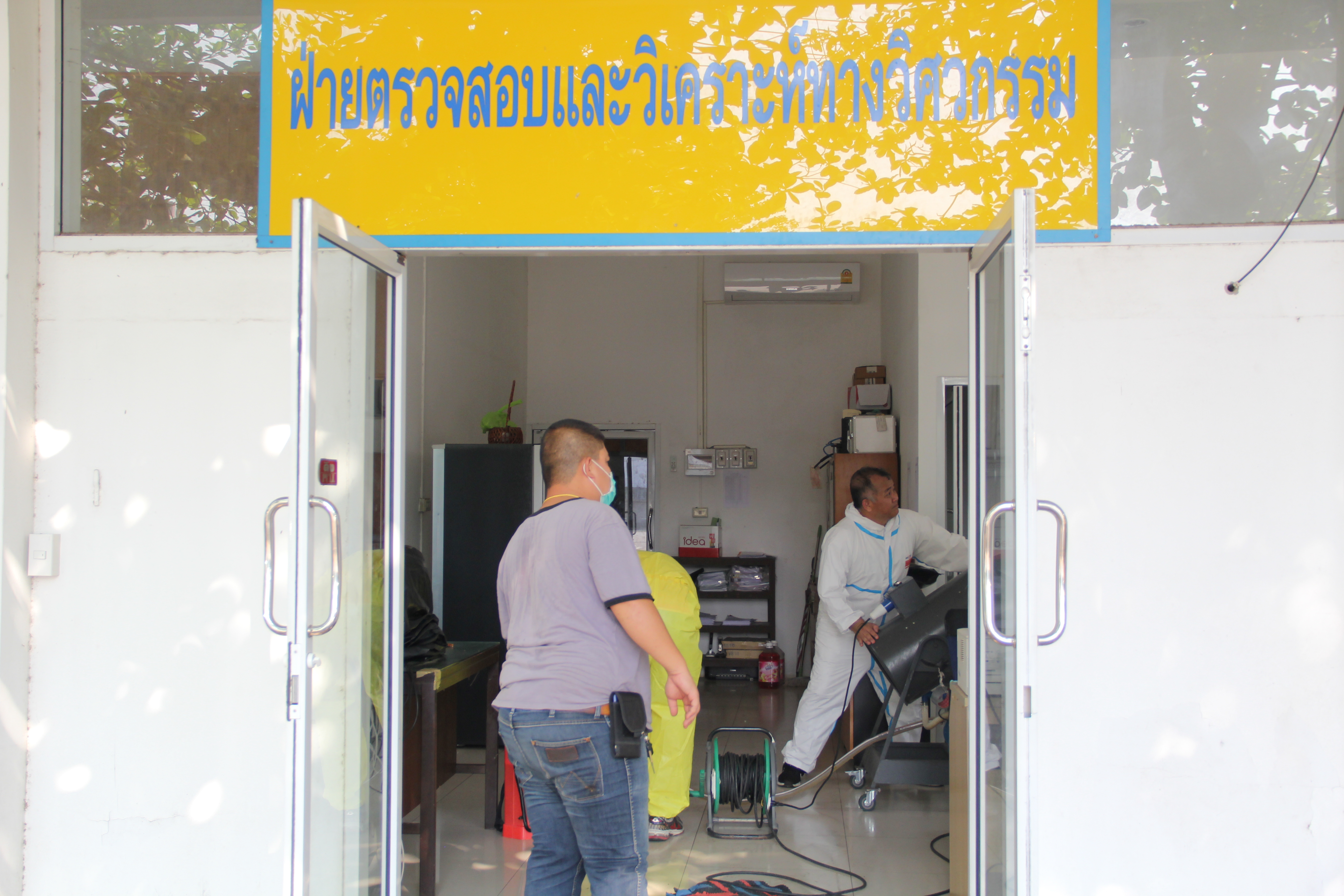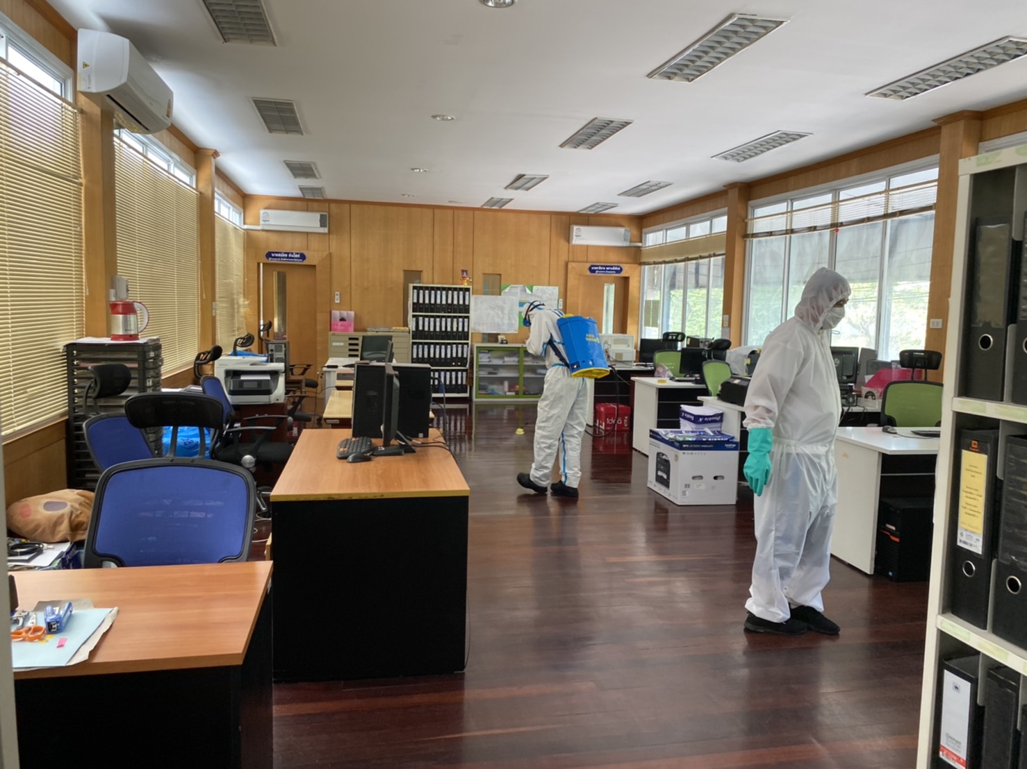 จ้าหน้าที่ทำความสะอาดโดยใช้น้ำยาฆ่าเชื้อบริเวณโต๊ะทำงาน ห้องทำงาน เป็นประจำอีกด้วย