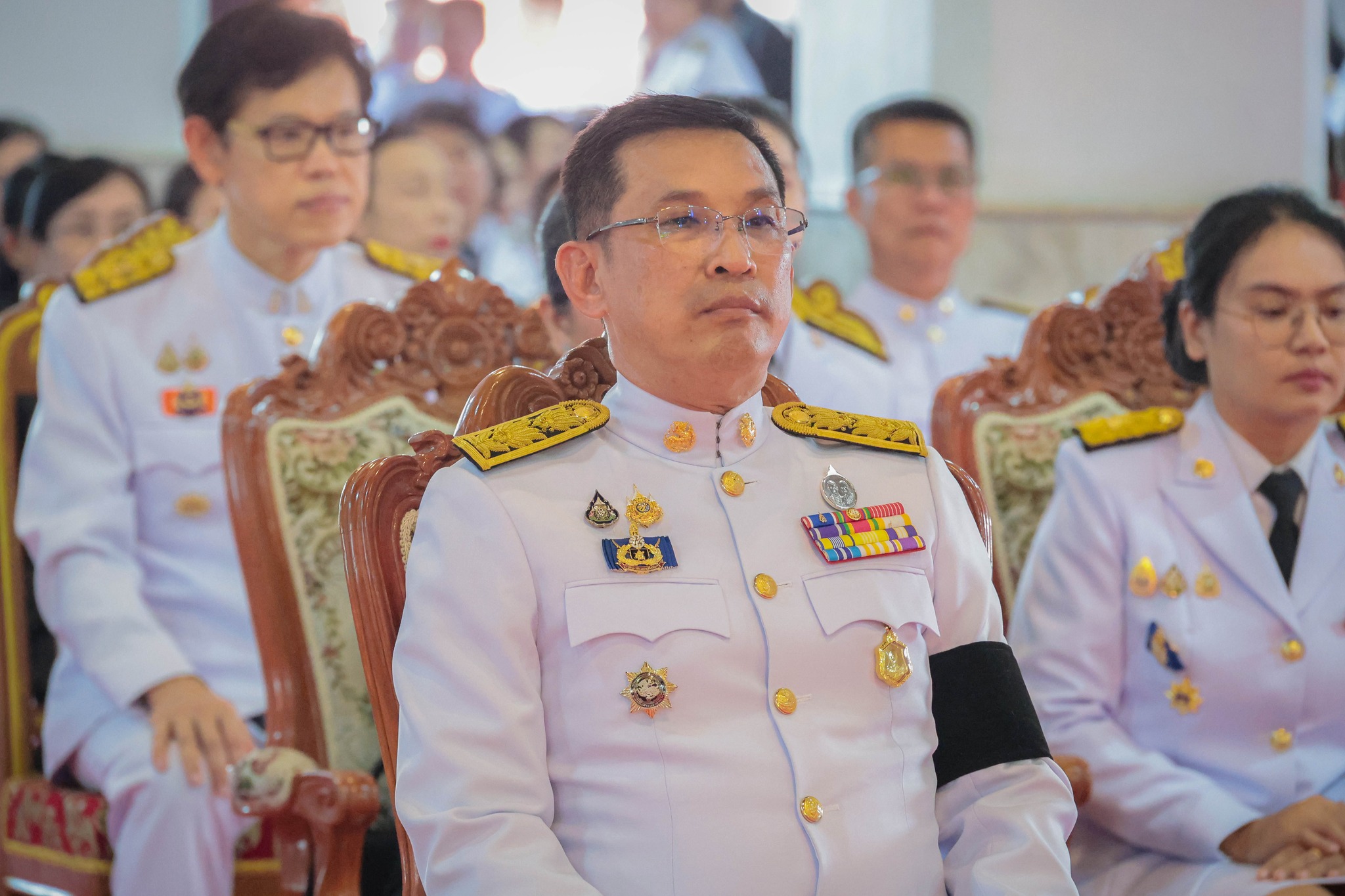 เข้าร่วมพิธีเจริญพระพุทธมนต์และทำบุญตักบาตรถวายพระราชกุศล เนื่องในวันคล้ายวันพระบรมราชสมภพพระบาทสมเด็จพระบรมชนกาธิเบศร มหาภูมิพลอดุลยเดชมหาราช บรมนาถบพิตรวันชาติ และวันพ่อแห่งชาติ ๕ ธันวาคม ๒๕๖๘