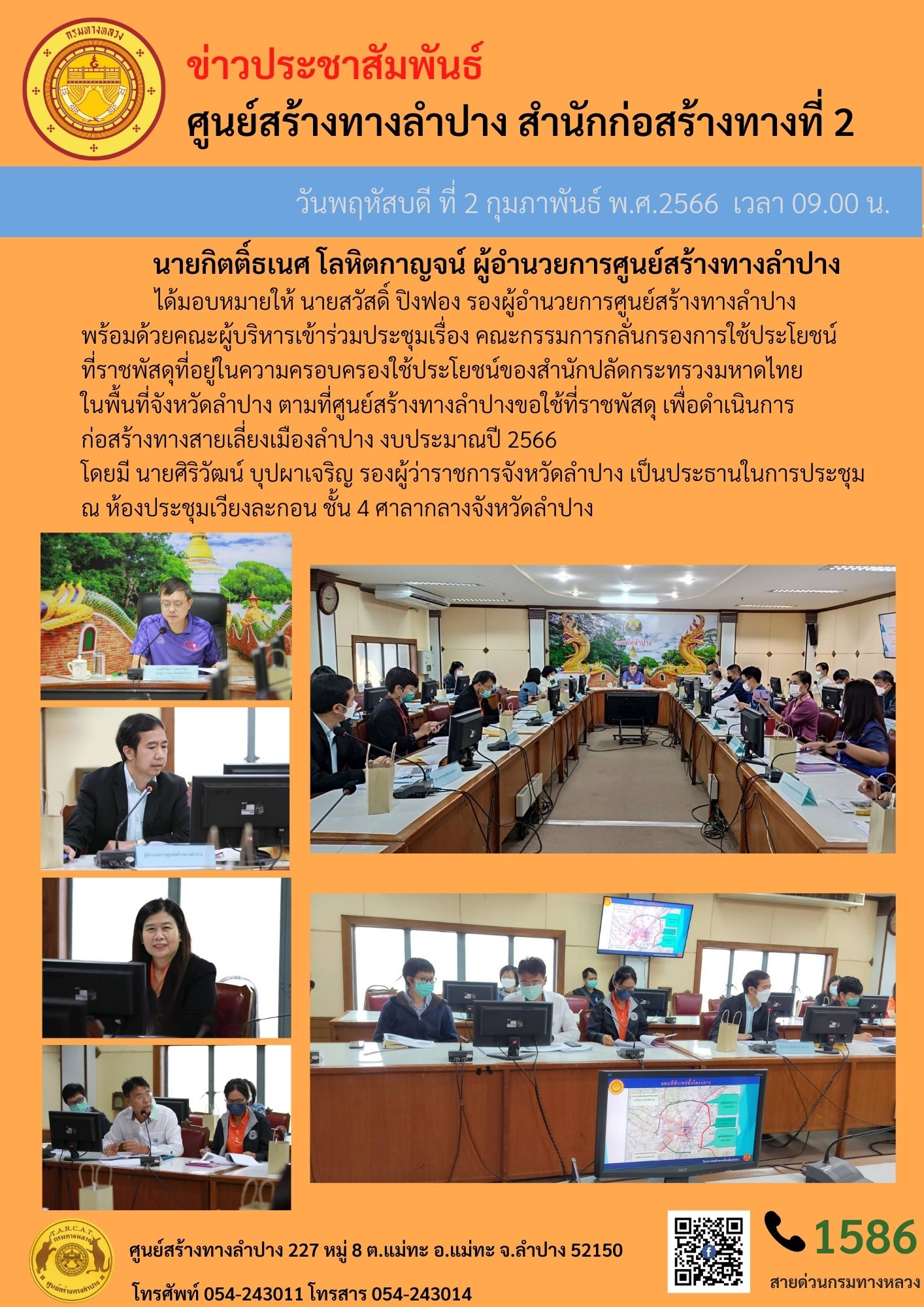 ประชุมเรื่อง คณะกรรมการกลั่นกรองการใช้ประโยชน์ที่ราชพัสดุที่อยู่ในความครอบครองใช้ประโยชน์ของสำนักปลัดกระทรวงมหาดไทยในพื้นที่จังหวัดลำปาง ตามที่ศูนย์สร้างทางลำปางขอใช้ที่ราชพัสดุ