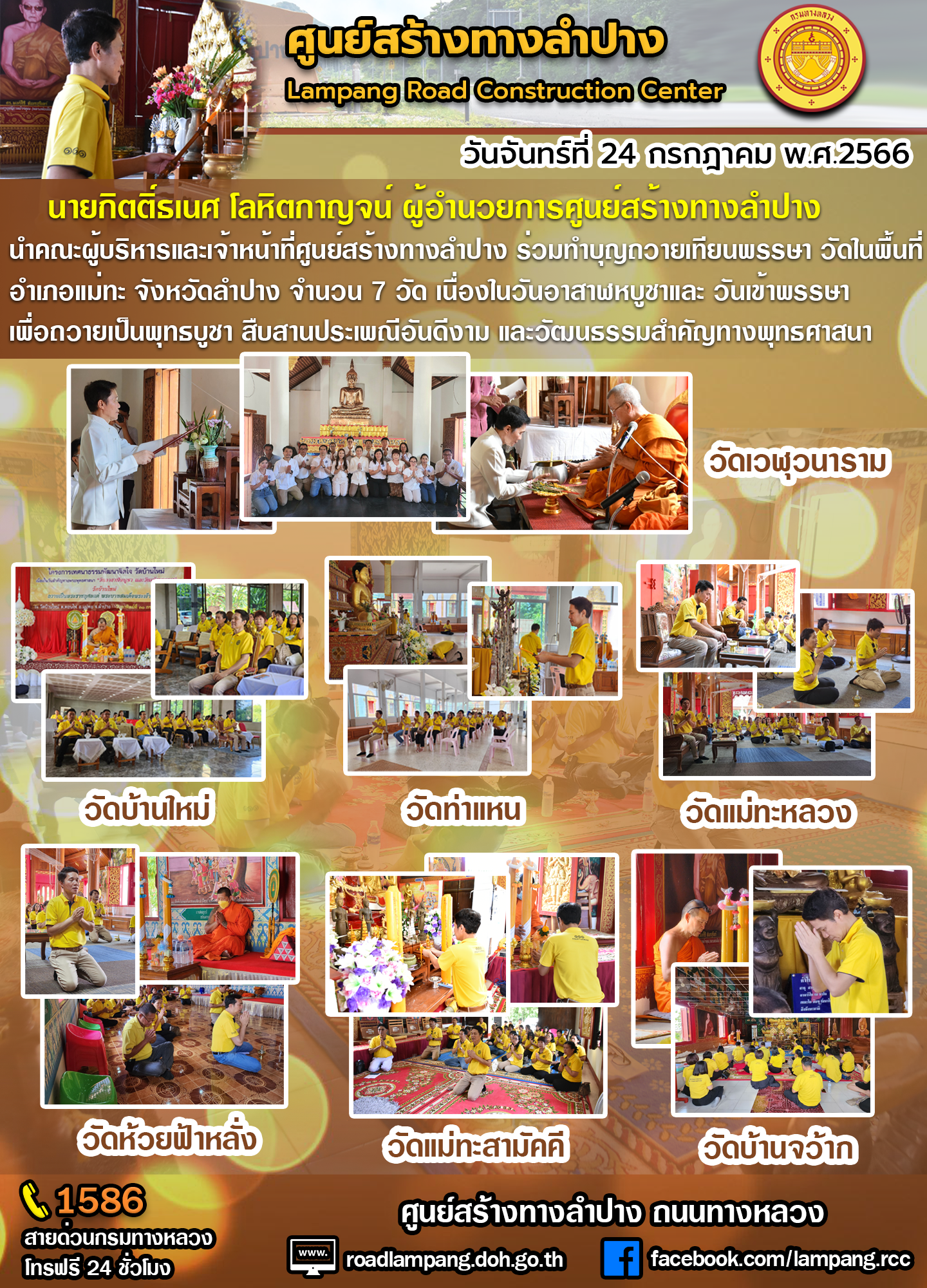 คณะผู้บริหารและเจ้าหน้าที่ศูนย์สร้างทางลำปาง ร่วมทำบุญถวายเทียนพรรษา