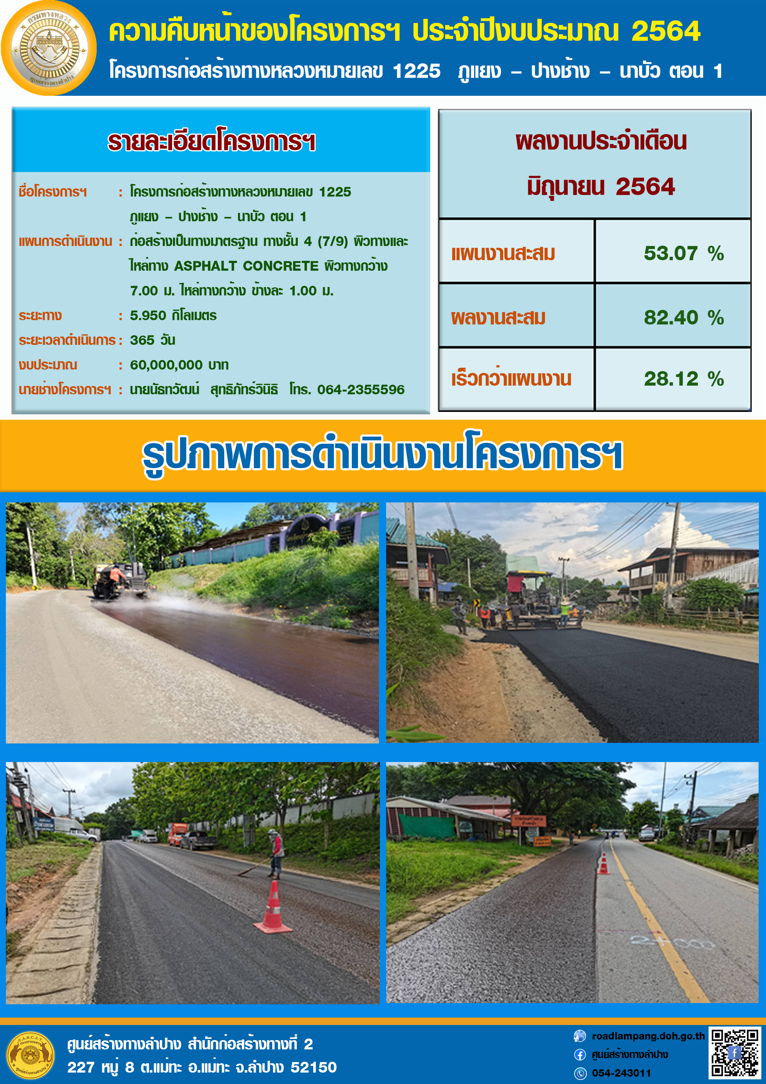 ความคืบหน้าของโครงการฯ ประจำเดือนมิถุนายน ปีงบประมาณ 2564