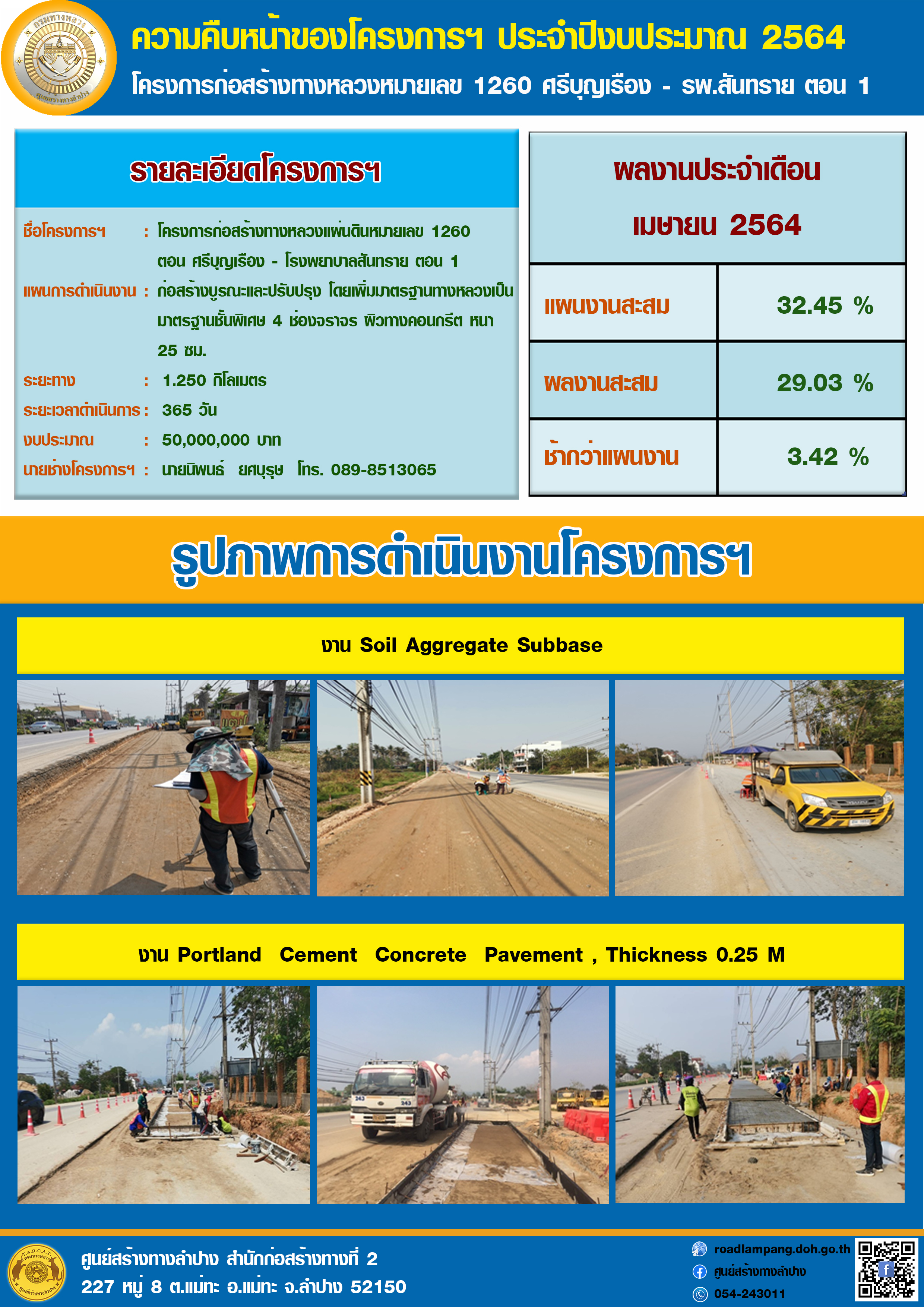 ความคืบหน้าของโครงการฯ ประจำเดือนเมษายน ปีงบประมาณ 2564