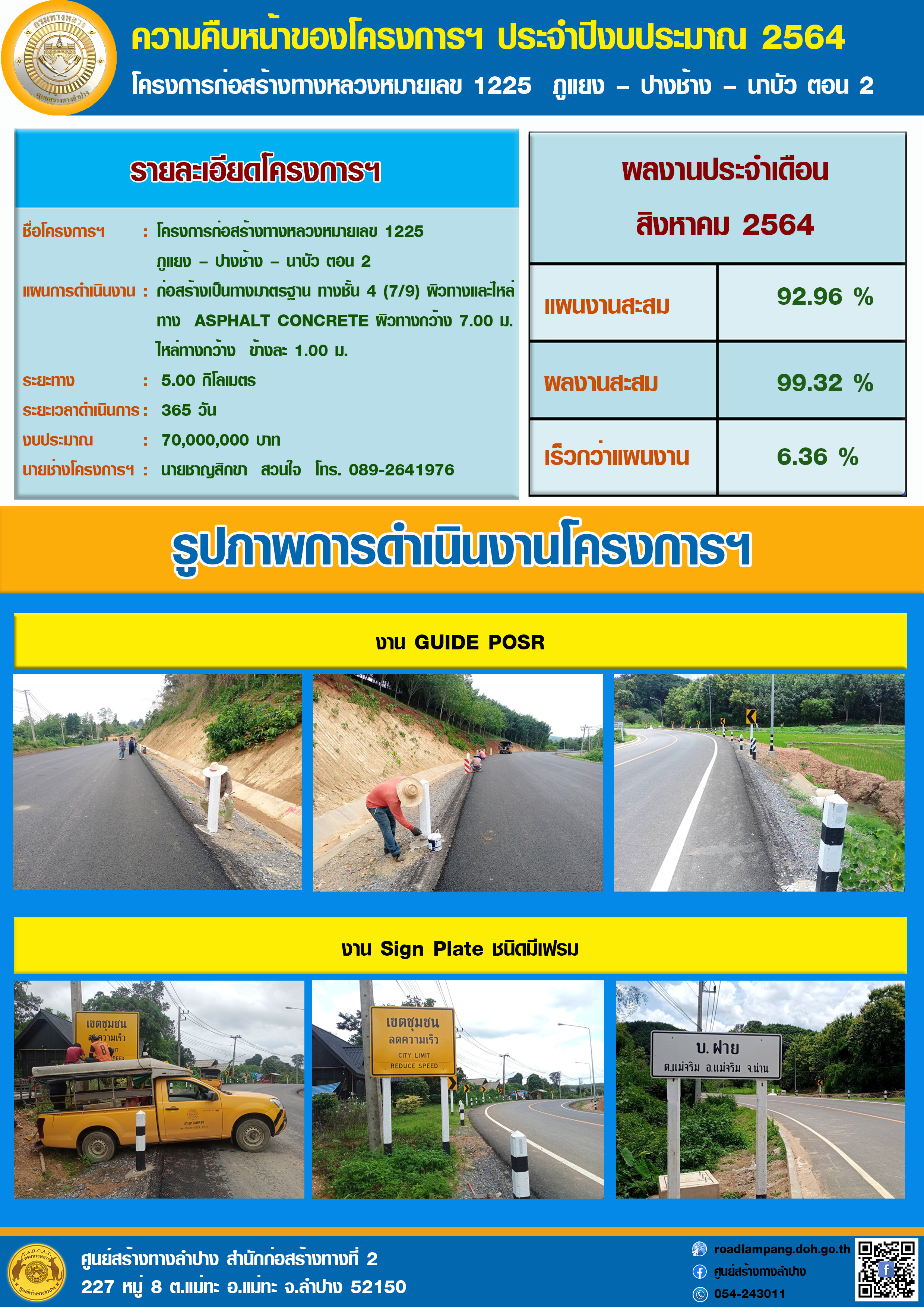 ความคืบหน้าของโครงการฯ ประจำเดือนสิงหาคม ปีงบประมาณ 2564