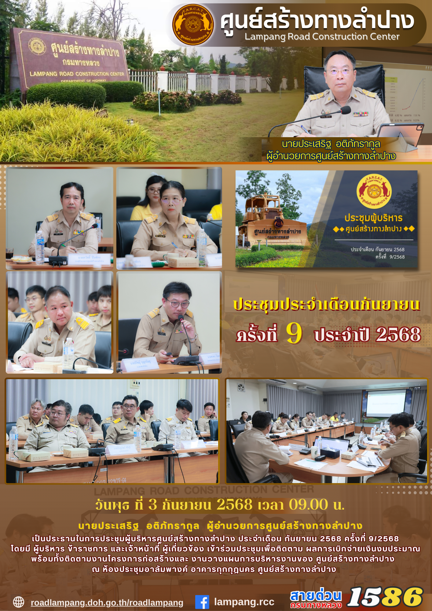 ประชุมผู้บริหารศูนย์สร้างทางลำปาง ประจำเดือน กันยายน 2568 ครั้งที่ 9/2568