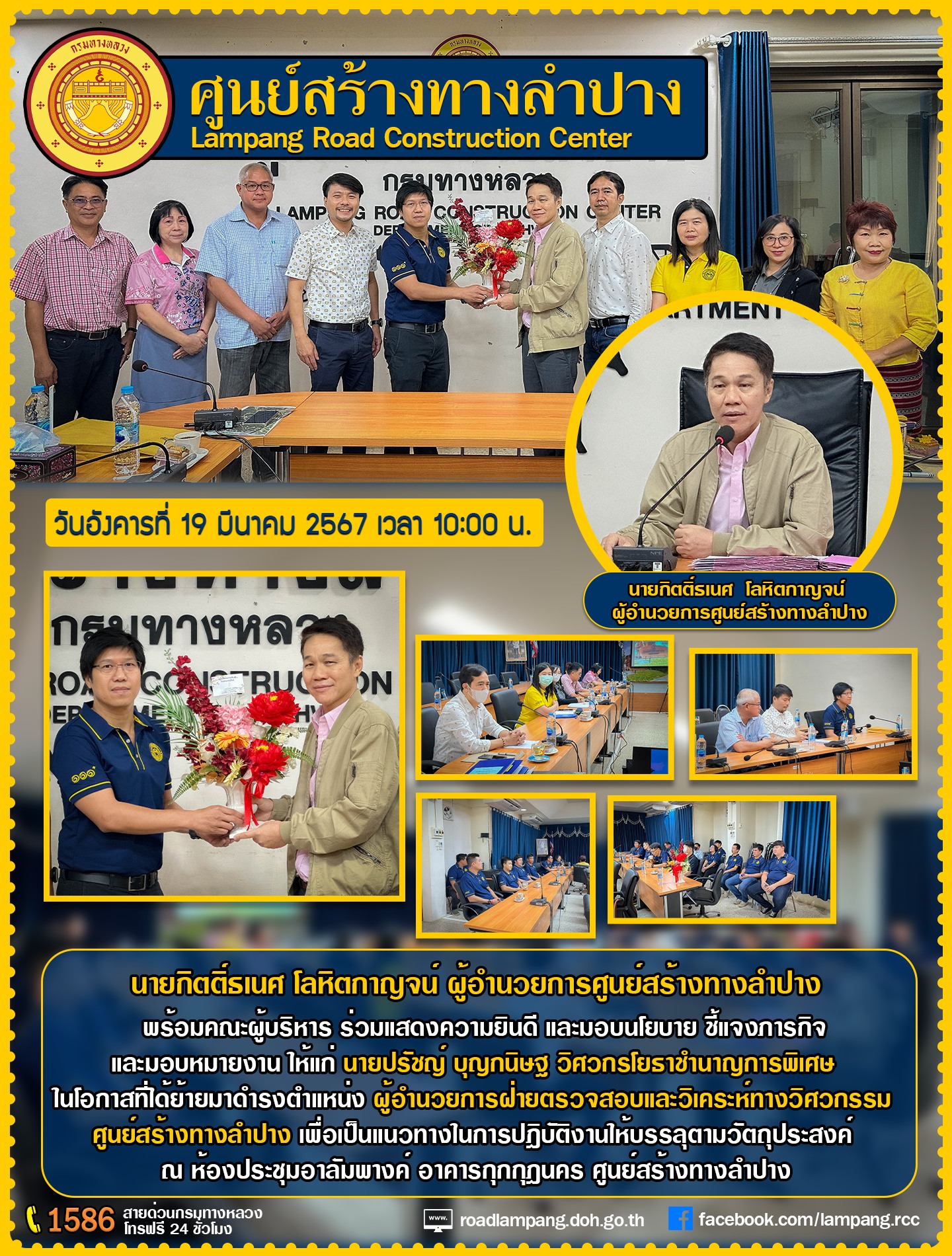 ร่วมแสดงความยินดี และมอบนโยบาย ชี้แจงภารกิจและมอบหมายงาน ให้แก่ นายปรัชญ์ บุญกนิษฐ วิศวกรโยธาชำนาญการพิเศษ