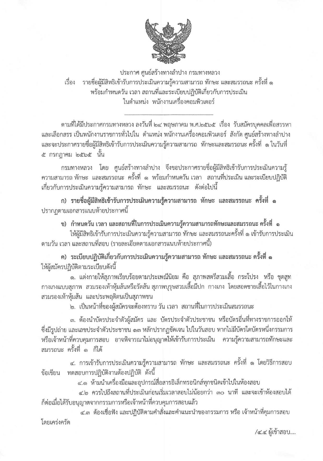 ประกาศรายชื่อผู้มีสิทธ์เข้ารับการประเมินสมรรถนะครั้งที่ 1 กำหนดวันและสถานที่ประเมินสมรรถนะเพื่อเลือกสรรเป็นพนักงานราชการทั่วไป