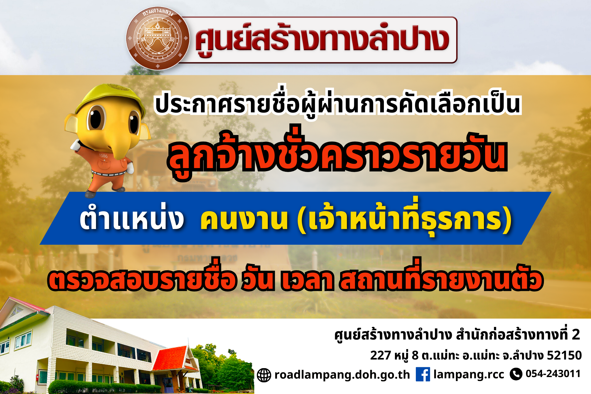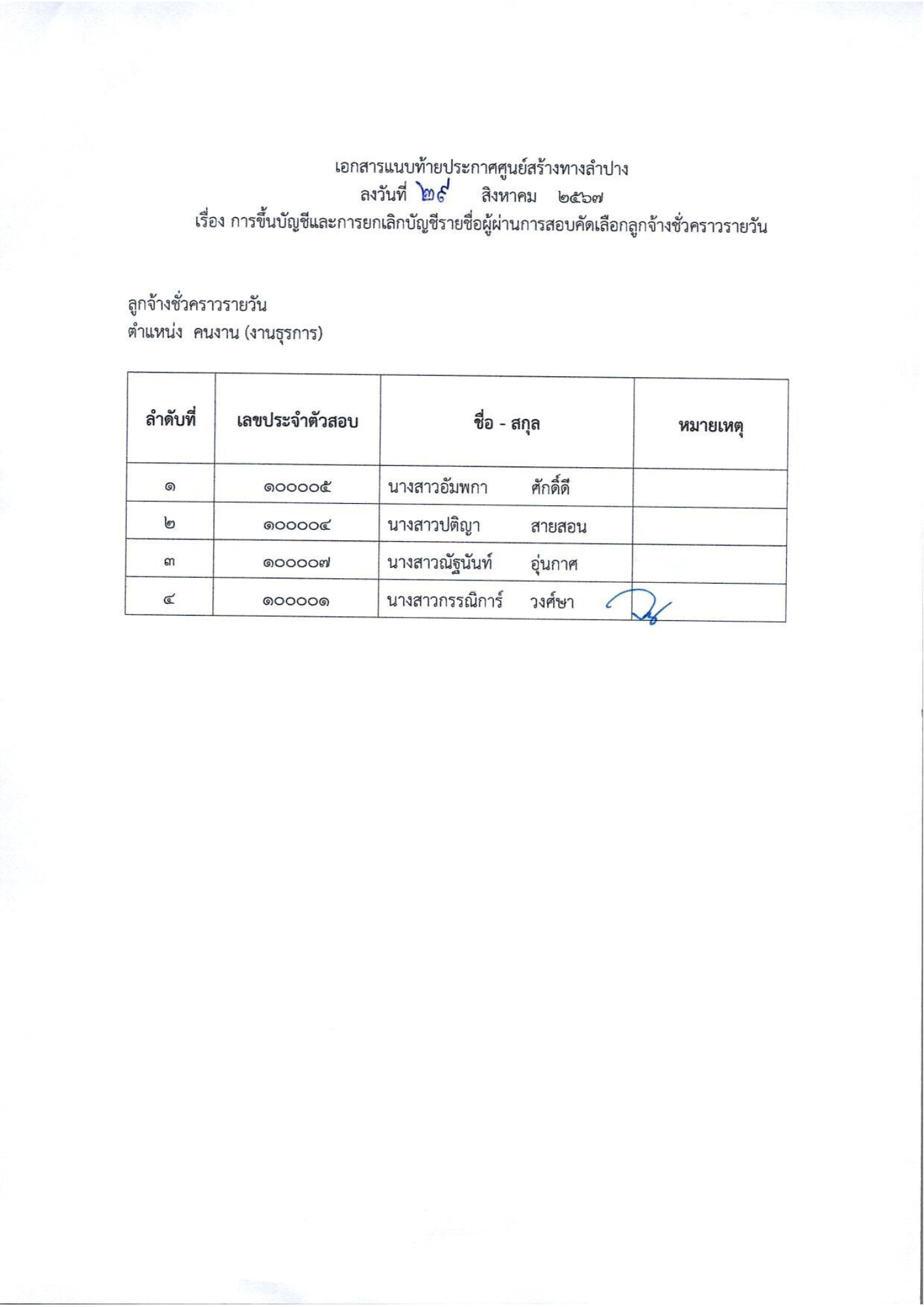 ประกาศรายชื่อผู้ผ่านการสอบคัดเลือกเป็นลูกจ้างชั่วคราวรายวัน