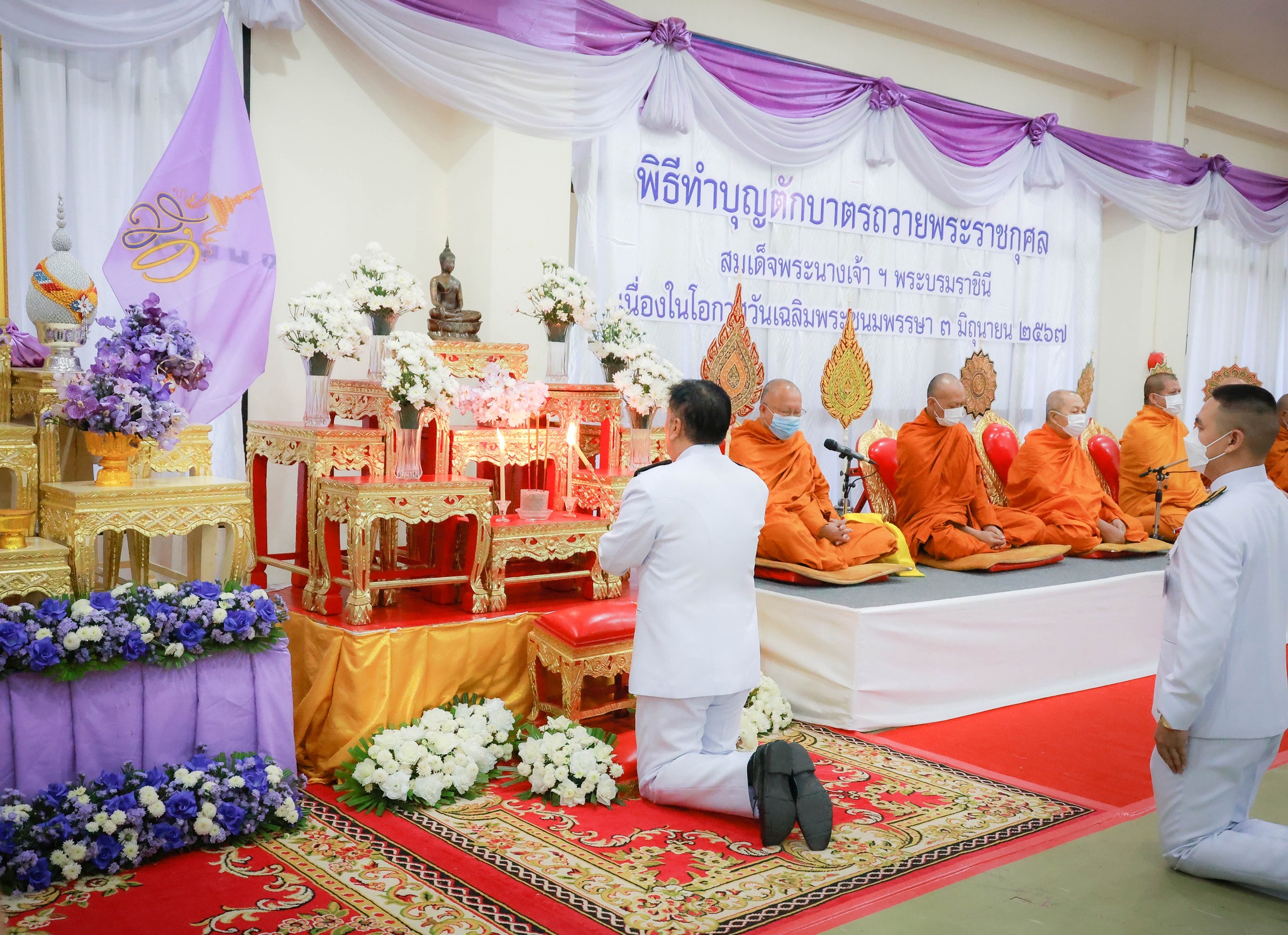นายกิตติ์ธเนศ โลหิตกาญจน์ ผู้อำนวยการศูนย์สร้างทางลำปาง มอบหมายให้ นายสวัสดิ์ ปิงฟอง รองผู้อำนวยการศูนย์สร้างทางลำปาง พร้อมเจ้าหน้าที่ฝ่ายแผนงาน ศูนย์สร้างทางลำปาง เข้าร่วมพิธีทำบุญตักบาตรถวายพระราชกุศล สมเด็จพระนางเจ้าสุทิดา พัชรสุธาพิมลลักษณ พระบรมราชินี เนื่องในโอกาสวันเฉลิมพระชนมพรรษา ๓ มิถุนายน ๒๕๖๗ โดยมี นายชัชวาลย์ ฉายะบุตร ผู้ว่าราชการจังหวัดลำปาง เป็นประธานในพิธี ณ อาคารหอประชุมจังหวัดลำปาง ศาลากลางจังหวัดลำปาง