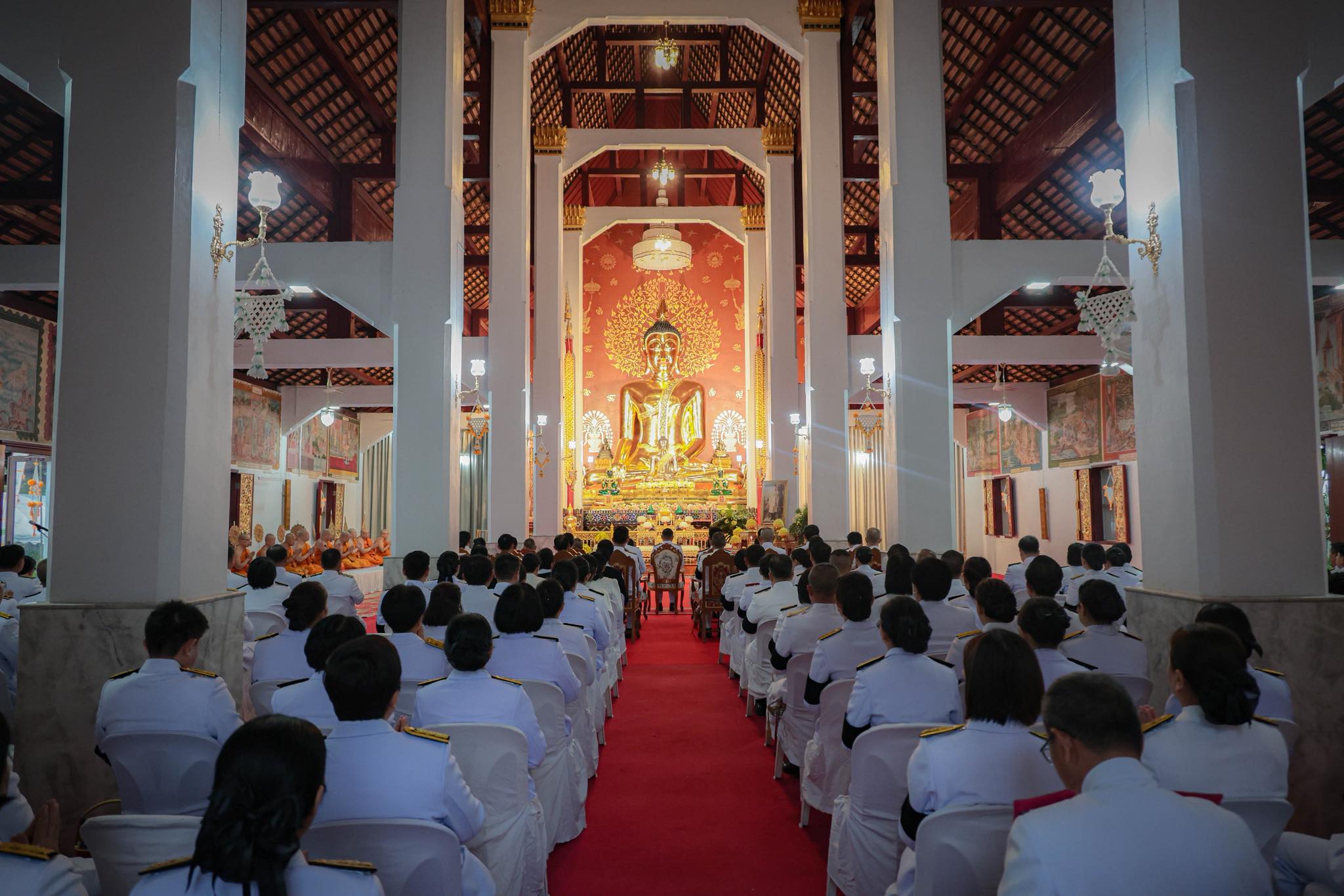 นายประเสริฐ อติภัทรากูล ผู้อำนวยการศูนย์สร้างทางลำปาง มอบหมายให้ นายณัฐกริชพัชร์ รุจจนพันธุ์ นายช่างเครื่องกลชำนาญงาน นายพันธวิศ ฤทธิรุ่ง นายช่างไฟฟ้าปฏิบัติงาน และเจ้าหน้าที่ฝ่ายเครื่องกล เข้าร่วมพิธีเจริญพระพุทธมนต์และทำบุญตักบาตรถวายพระราชกุศล เนื่องในวันคล้ายวันพระบรมราชสมภพพระบาทสมเด็จพระบรมชนกาธิเบศร มหาภูมิพลอดุลยเดชมหาราช บรมนาถบพิตรวันชาติ และวันพ่อแห่งชาติ ๕ ธันวาคม ๒๕๖๘ โดยมี นายวิวัฒน์ อินทร์ไทยวงศ์ ผู้ว่าราชการจังหวัดลำปาง เป็นประธานในพิธี พร้อมด้วยหัวหน้าส่วนราชการ หน่วยงานรัฐวิสาหกิจ ภาคเอกชน และภาคประชาชน เข้าร่วมพิธีอย่างพร้อมเพียงกัน ณ วัดพระแก้วดอนเต้าสุชาดารามพระอารามหลวง ตำบลเวียงเหนือ อำเภอเมืองลำปาง จังหวัดลำปาง