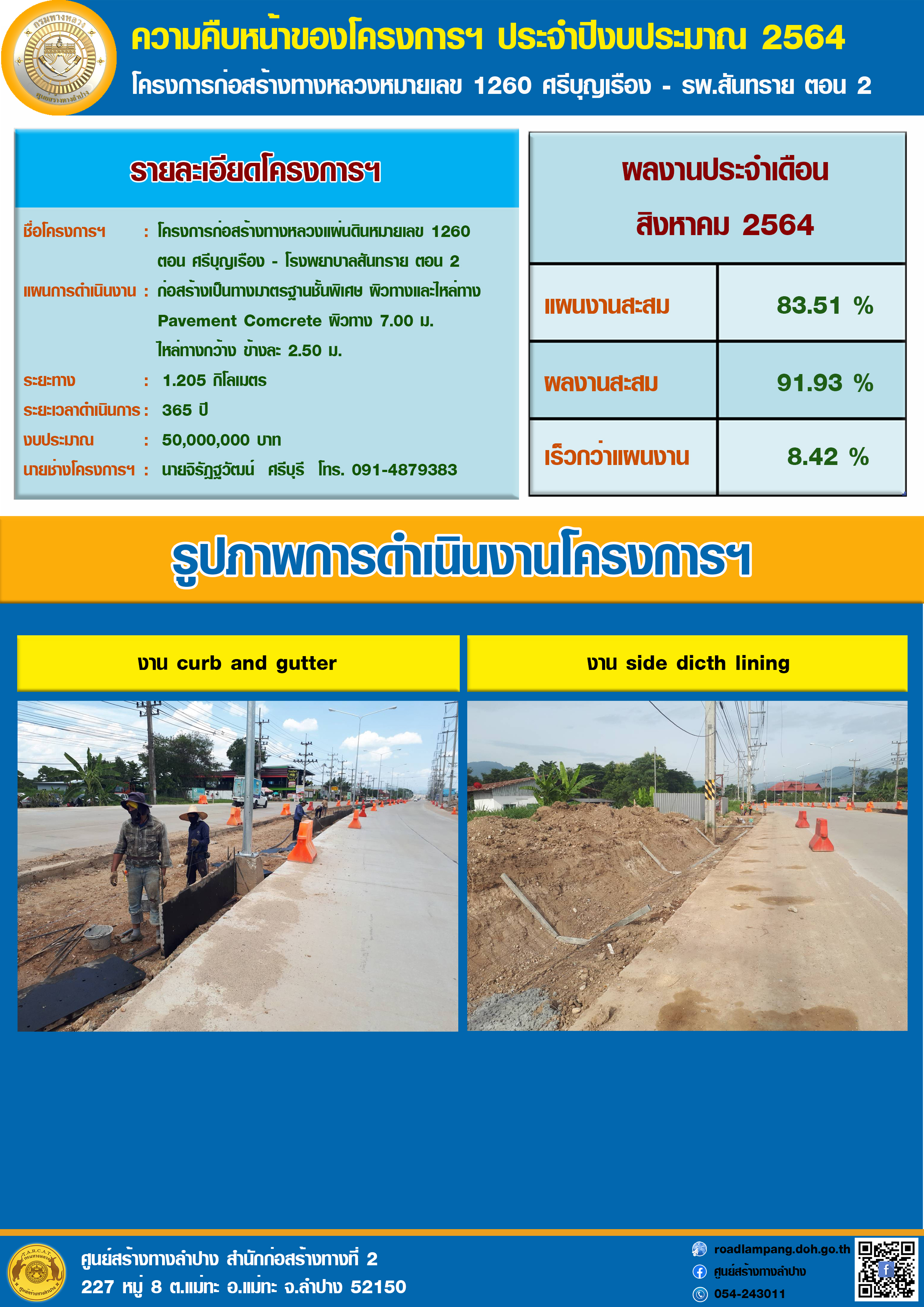 1. โครงการก่อสร้างทางหลวงแผ่นดินหมายเลข 1260 ตอน ศรีบุญเรือง - โรงพยาบาลสันทราย ตอน 1
