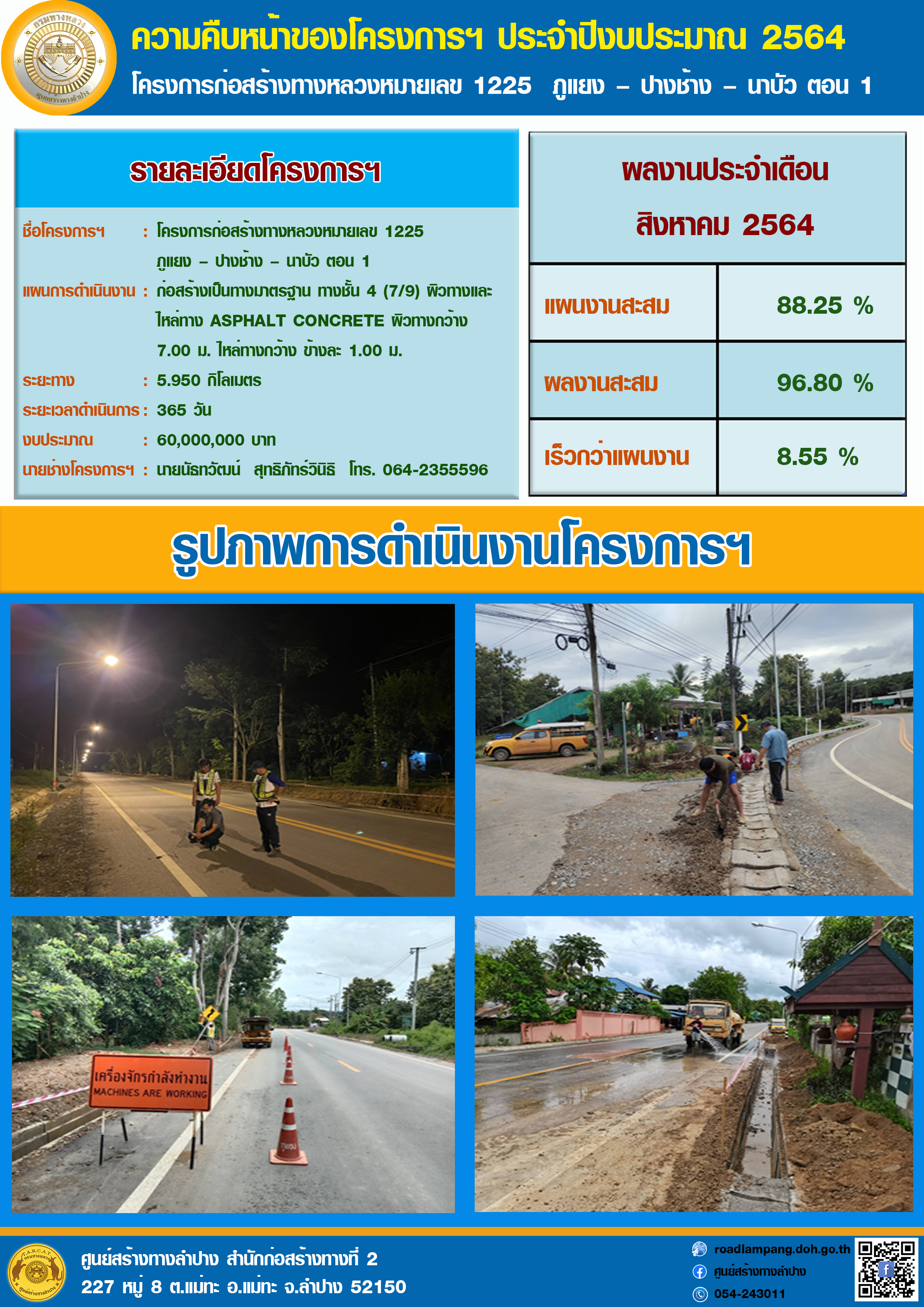 ความคืบหน้าของโครงการฯ ประจำเดือนสิงหาคม ปีงบประมาณ 2564