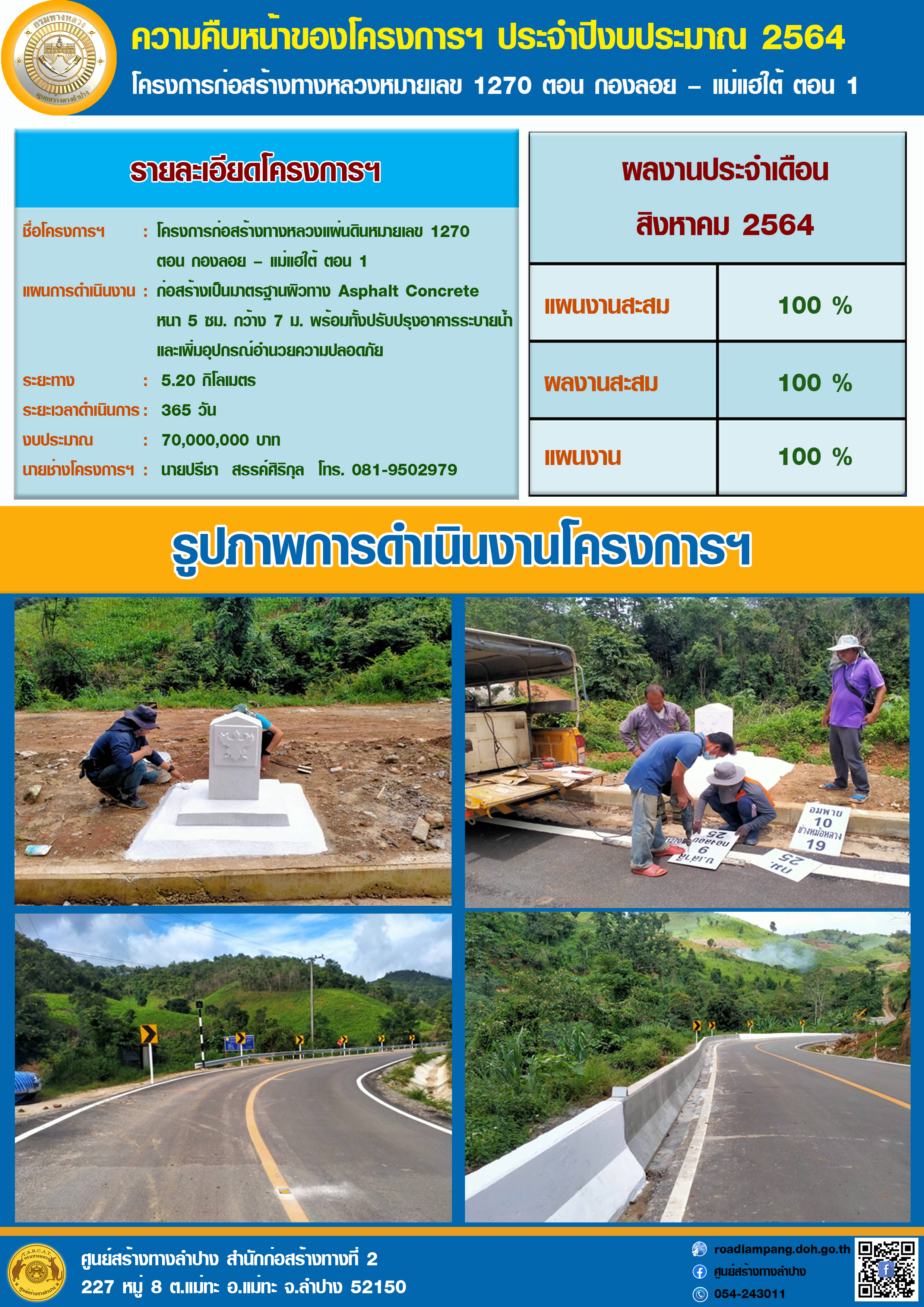โครงการก่อสร้างทางหลวงแผ่นดินหมายเลข 1270 ตอน กองลอย - แม่แฮใต้ ตอน 1