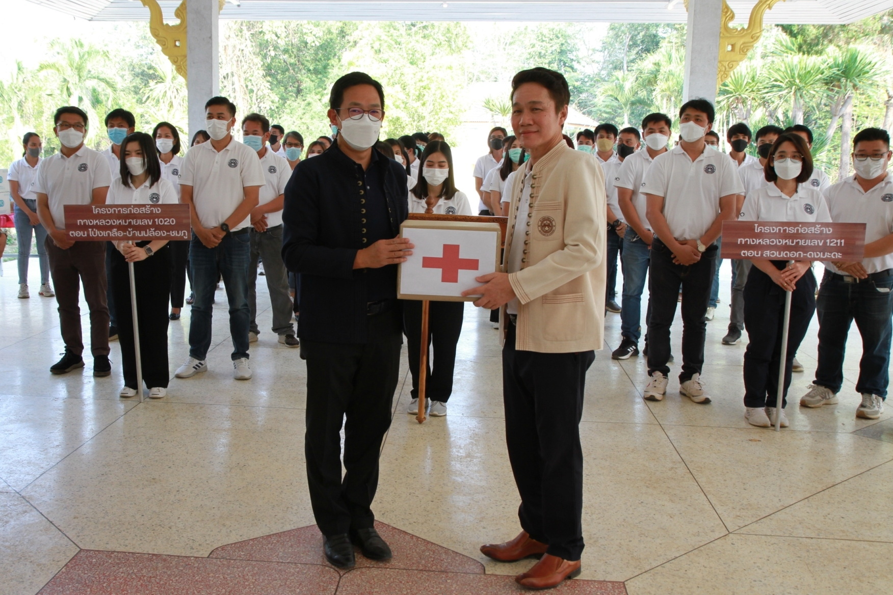 นายกิตติ์ธเนศ โลหิตกาญจน์ ผู้อำนวยการศูนย์สร้างทางลำปาง พร้อมคณะผู้บริหาร ข้าราชการ และเจ้าหน้าที่ในสังกัด ร่วมต้อนรับคณะตรวจราชการ นายดนัย เรืองสอน วิศวกรใหญ่ด้านอำนวยความปลอดภัย เพื่อตรวจเยี่ยมและสร้างขวัญกำลังใจให้กับผู้ปฏิบัติงาน ประจำปี 2566 โดยมอบยาและเวชภัณฑ์ให้กับเจ้าหน้าที่ศูนย์สร้างทางลำปาง โครงการฯ ทล.1020 ตอน โป่งเกลือ - บ้านปล้อง – ชมภู และ โครงการฯ ทล.1211 ตอน สวนดอก - ดงมะดะ ณ ศาลากาแลรัตน์ ศูนย์สร้างทางลำปาง