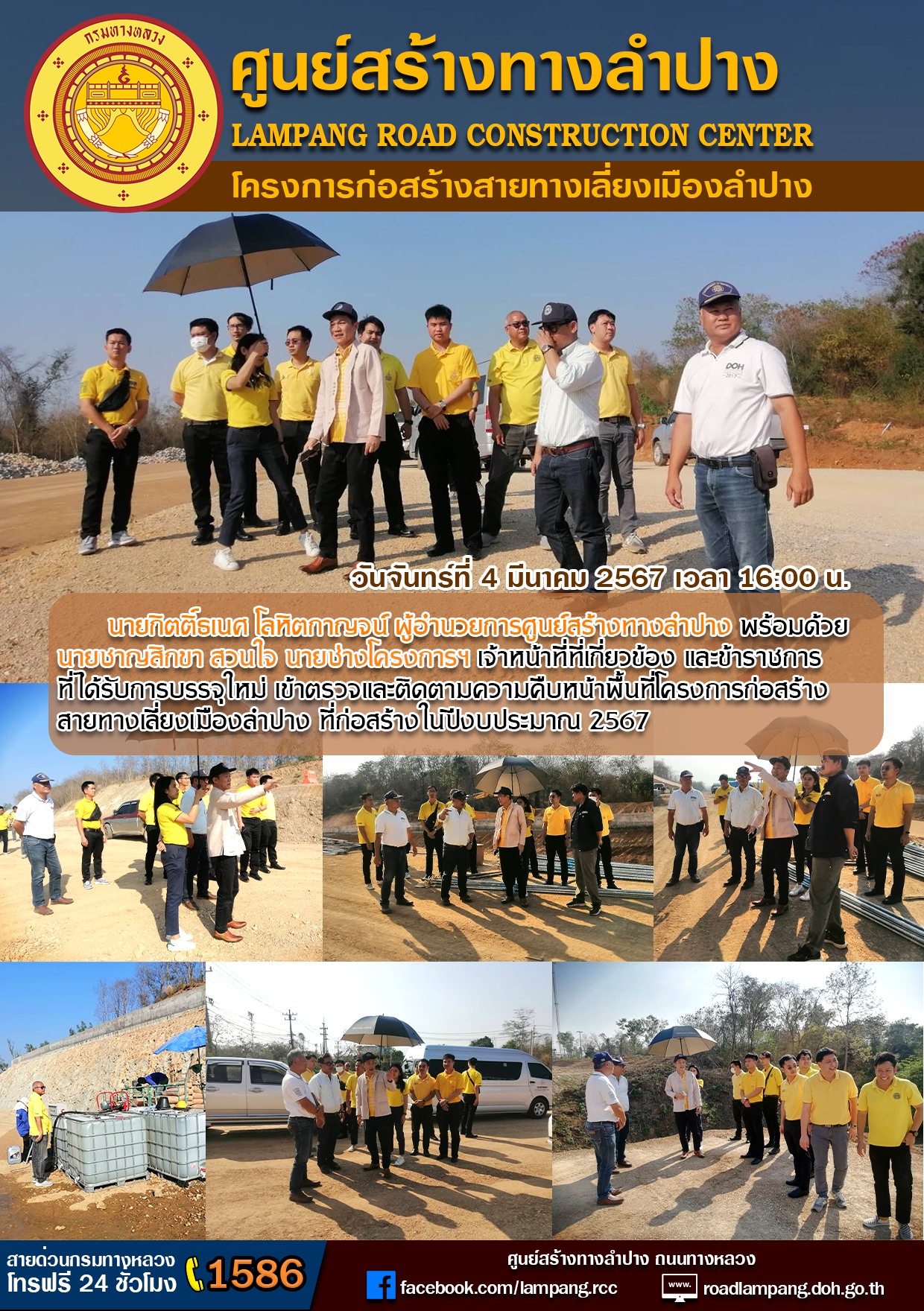 นายกิตติ์ธเนศ โลหิตกาญจน์ ผู้อำนวยการศูนย์สร้างทางลำปาง พร้อมด้วย นายชาญสิกขา สวนใจ นายช่างโครงการฯ เจ้าหน้าที่ที่เกี่ยวข้อง และข้าราชการที่ได้รับการบรรจุใหม่ เข้าตรวจและติดตามความคืบหน้าพื้นที่โครงการก่อสร้างสายทางเลี่ยงเมืองลำปาง ที่ก่อสร้างในปีงบประมาณ 2567