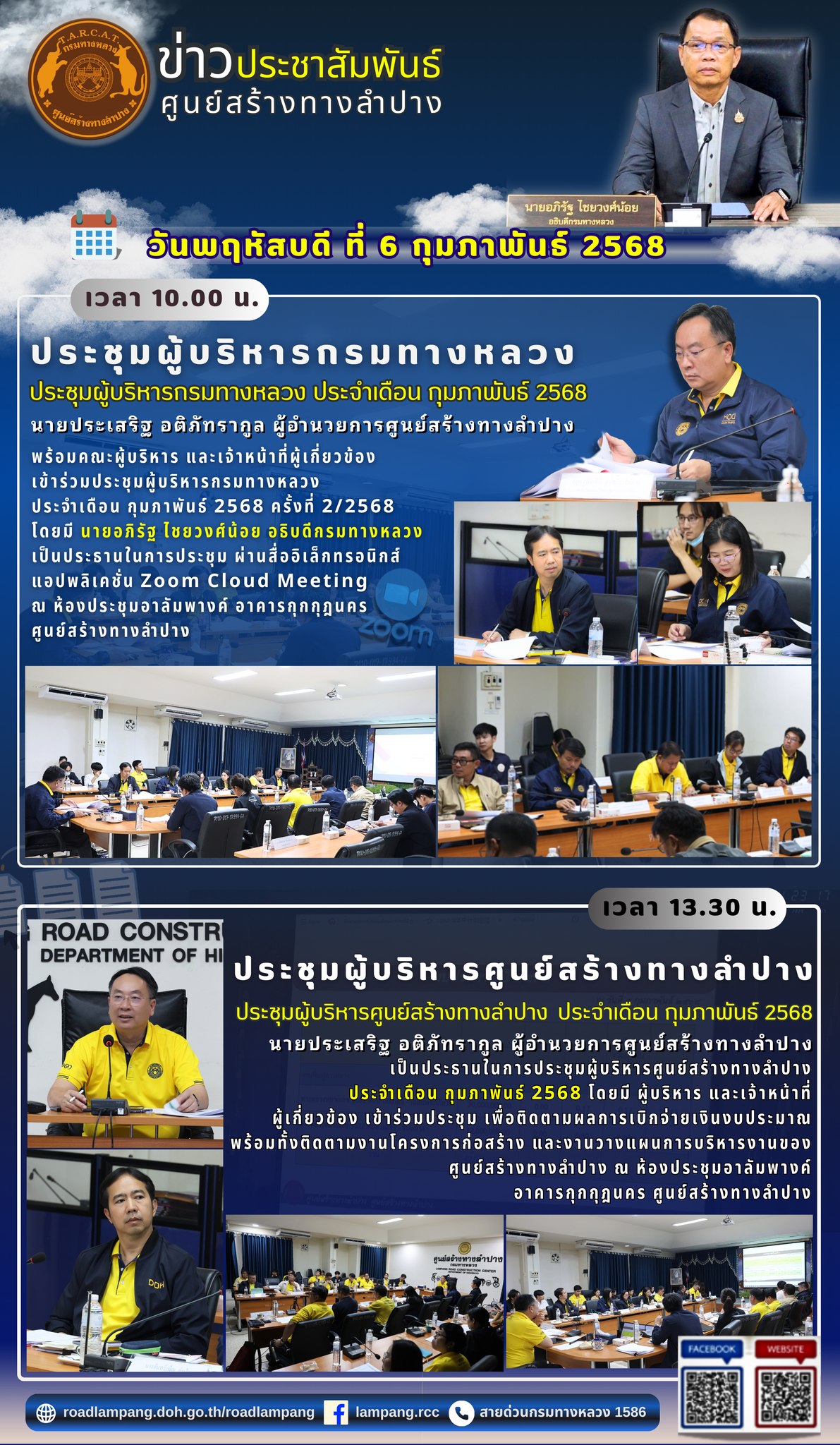 ประชุมผู้บริหารศูนย์สร้างทางลำปาง ประจำเดือน กุมภาพันธ์ 2568
