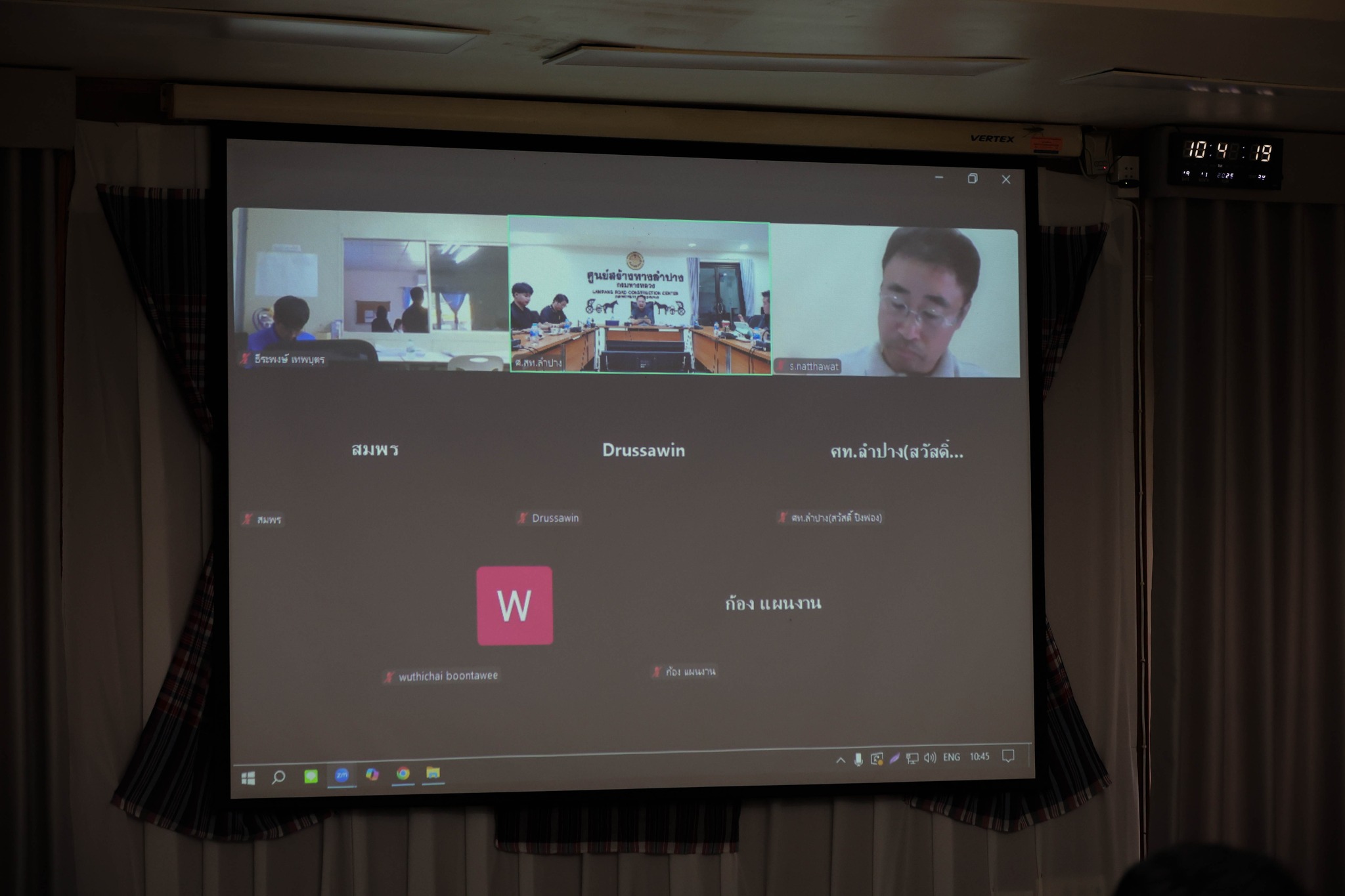 นายประเสริฐ อติภัทรากูล ผู้อำนวยการศูนย์สร้างทางลำปาง เป็นประธานการประชุมติดตามความก้าวหน้าของโครงการก่อสร้างในสังกัด ครั้งที่ 19/2568 โดยมีผู้บริหาร และเจ้าหน้าที่ผู้เกี่ยวข้อง เข้าร่วมประชุม ผ่านระบบ Zoom Cloud Meeting ณ ห้องประชุมอาลัมพางค์ อาคารกุกกุฎนคร ศูนย์สร้างทางลำปาง