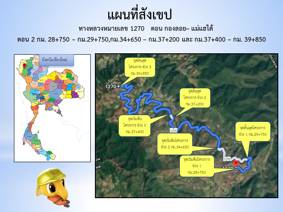 เนื้อหาเพจ : โครงการก่อสร้างทางหลวงหมายเลข 1270 ตอน กองลอย – แม่แฮใต้ ตอน 2