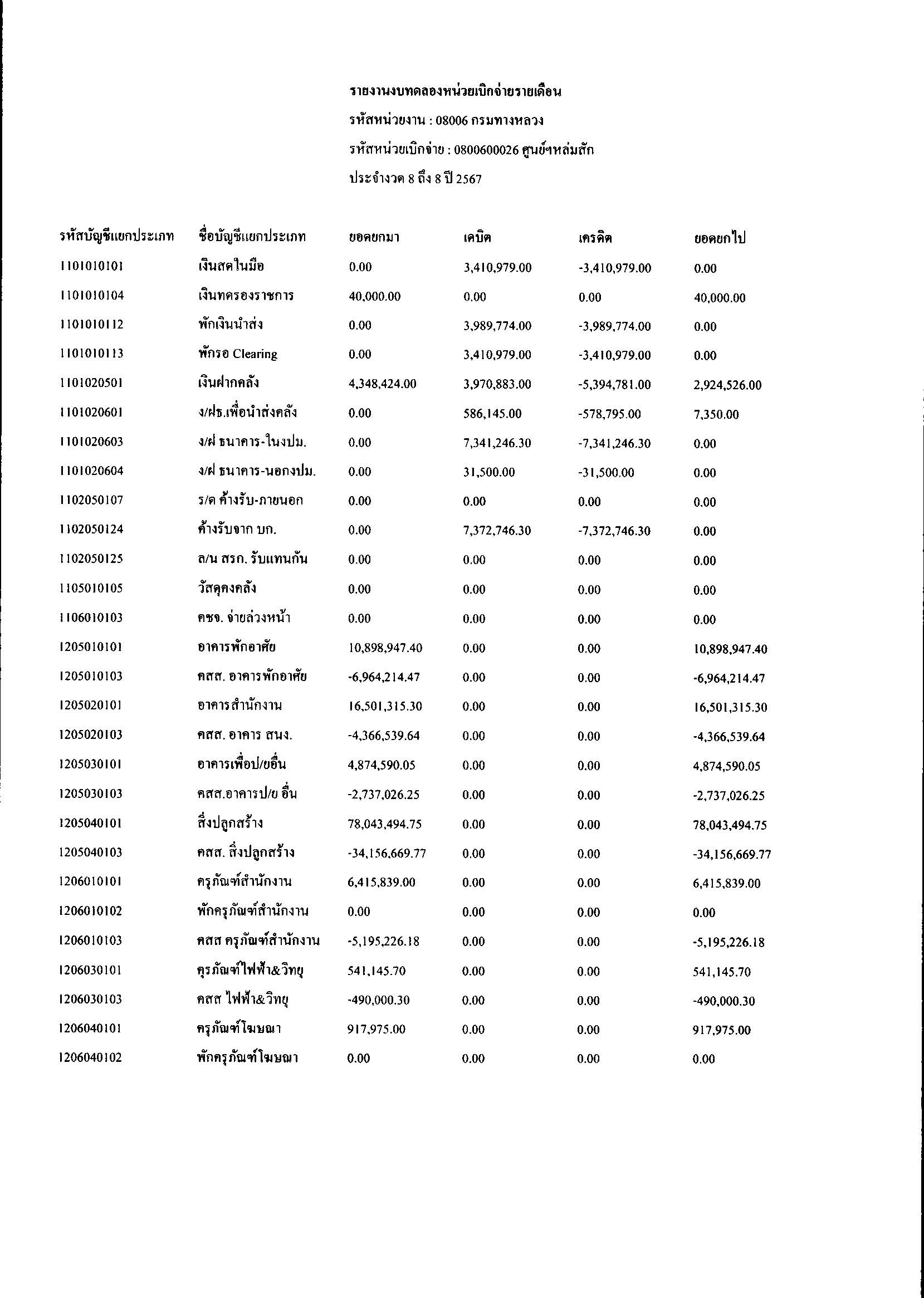 ประกาศเปิดเผยงบทดลองประจำเดือน สิงหาคม 2567 ปีงบประมาณ 2567